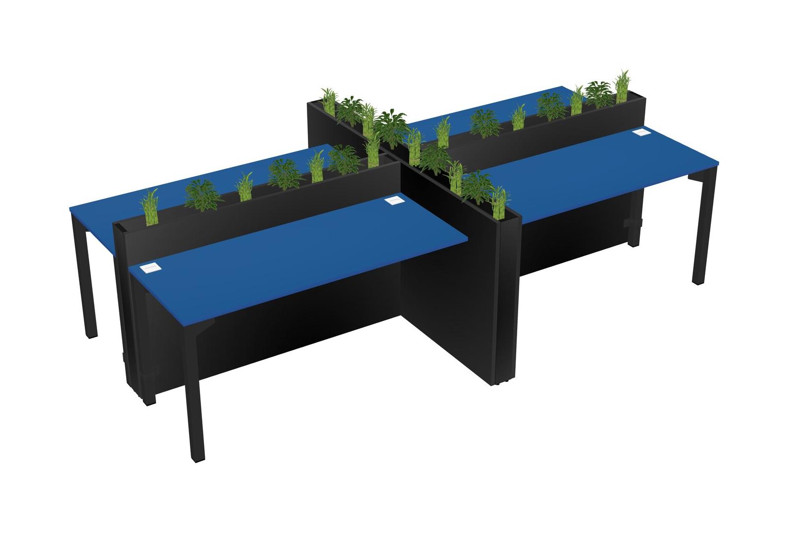 Prism Blue Rectangular Shared Office Desk For 4 Persons Let Nature Help Flourish Your Productivity The Base Comes With An Adjustable Shelf To Provide Space For Pots (Pots & Plants Sold Separately)