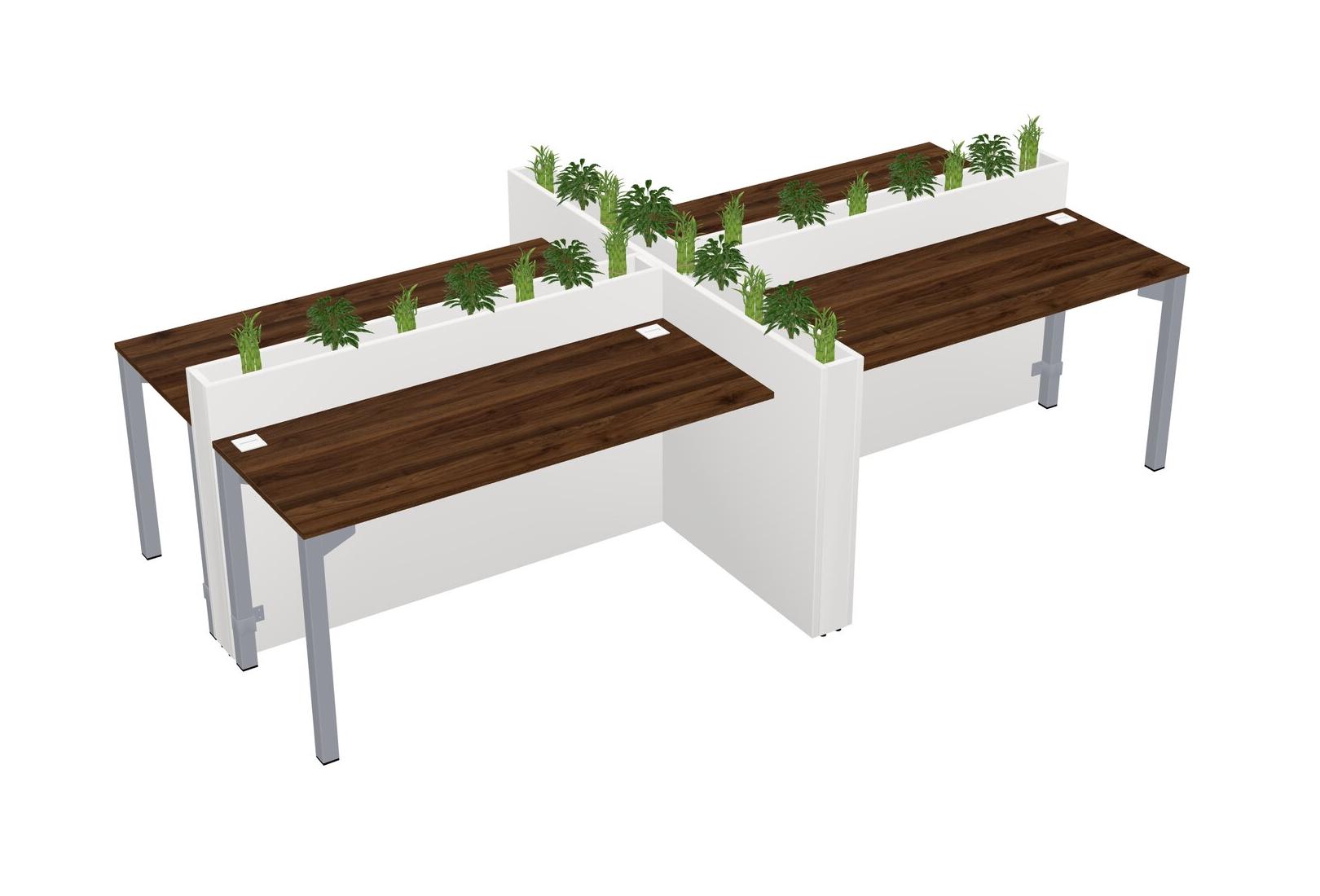 Columbia Walnut Rectangular Shared Office Desk For 4 Persons Let Nature Help Flourish Your Productivity The Base Comes With An Adjustable Shelf To Provide Space For Pots (Pots & Plants Sold Separately)