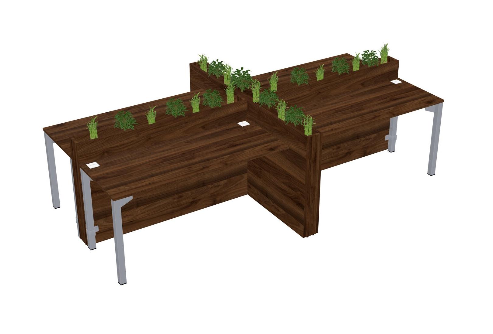 Columbia Walnut Rectangular Shared Office Desk For 4 Persons Let Nature Help Flourish Your Productivity The Base Comes With An Adjustable Shelf To Provide Space For Pots (Pots & Plants Sold Separately)