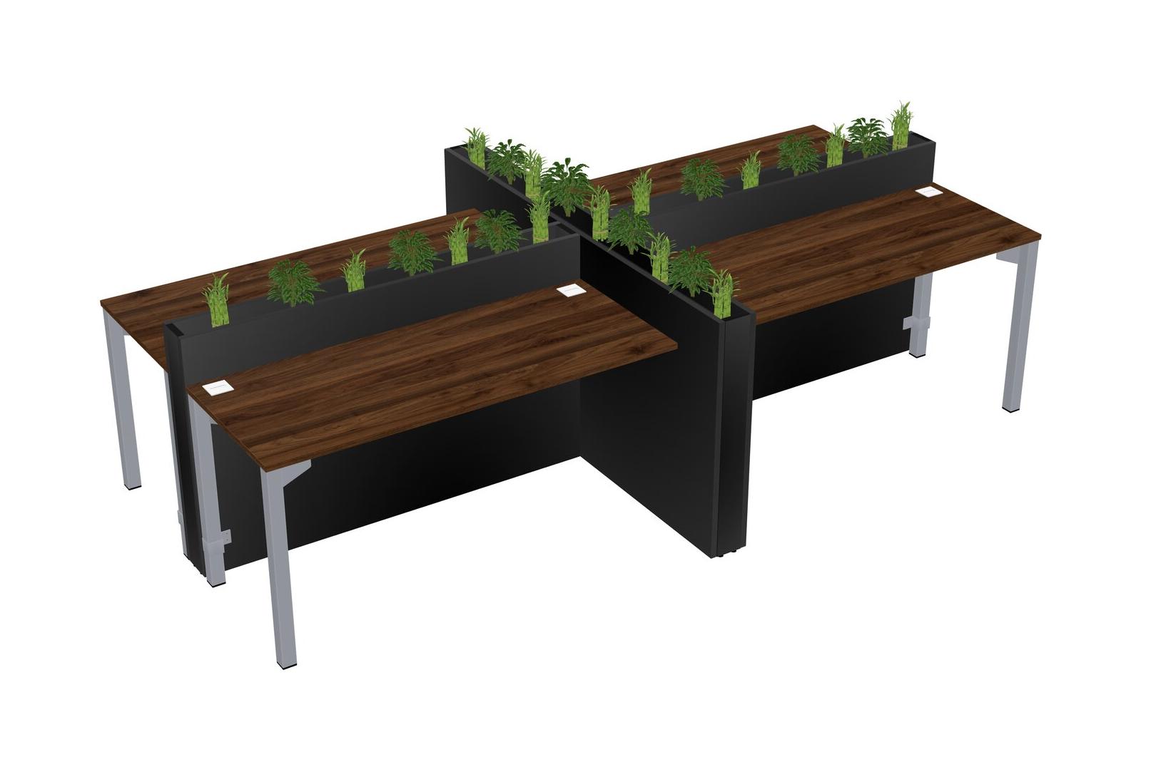Columbia Walnut Rectangular Shared Office Desk For 4 Persons Let Nature Help Flourish Your Productivity The Base Comes With An Adjustable Shelf To Provide Space For Pots (Pots & Plants Sold Separately)