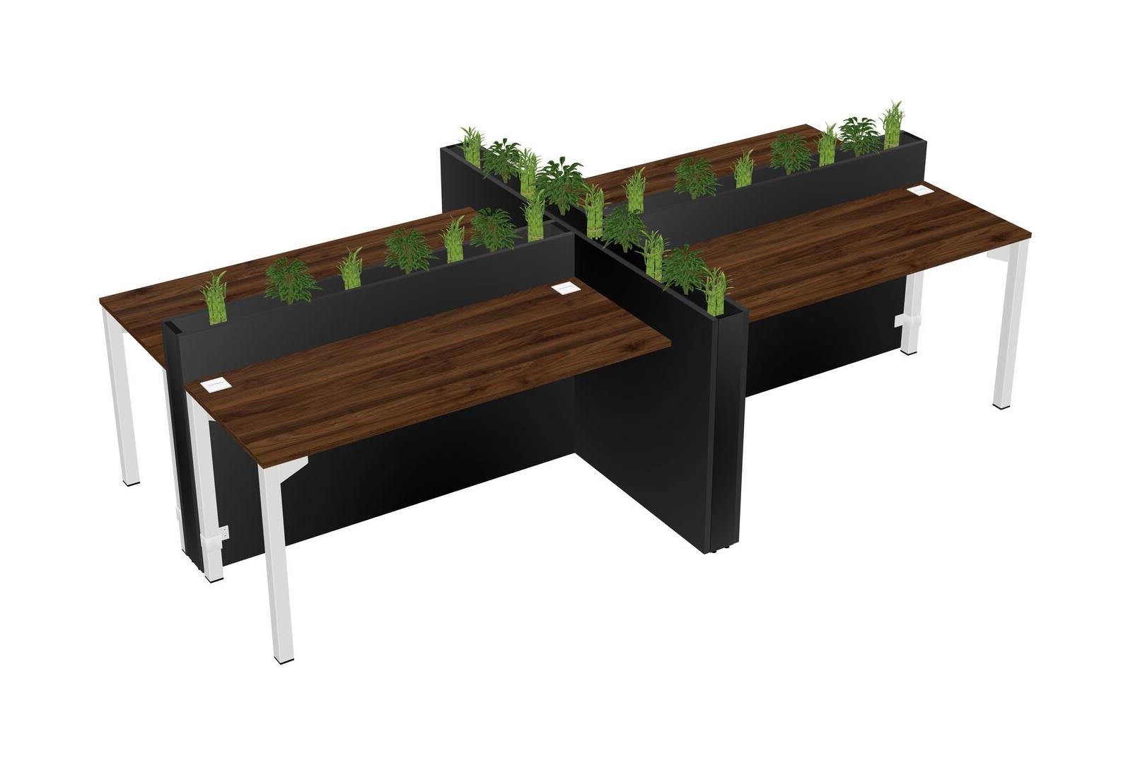 Columbia Walnut Rectangular Shared Office Desk For 4 Persons Let Nature Help Flourish Your Productivity The Base Comes With An Adjustable Shelf To Provide Space For Pots (Pots & Plants Sold Separately)