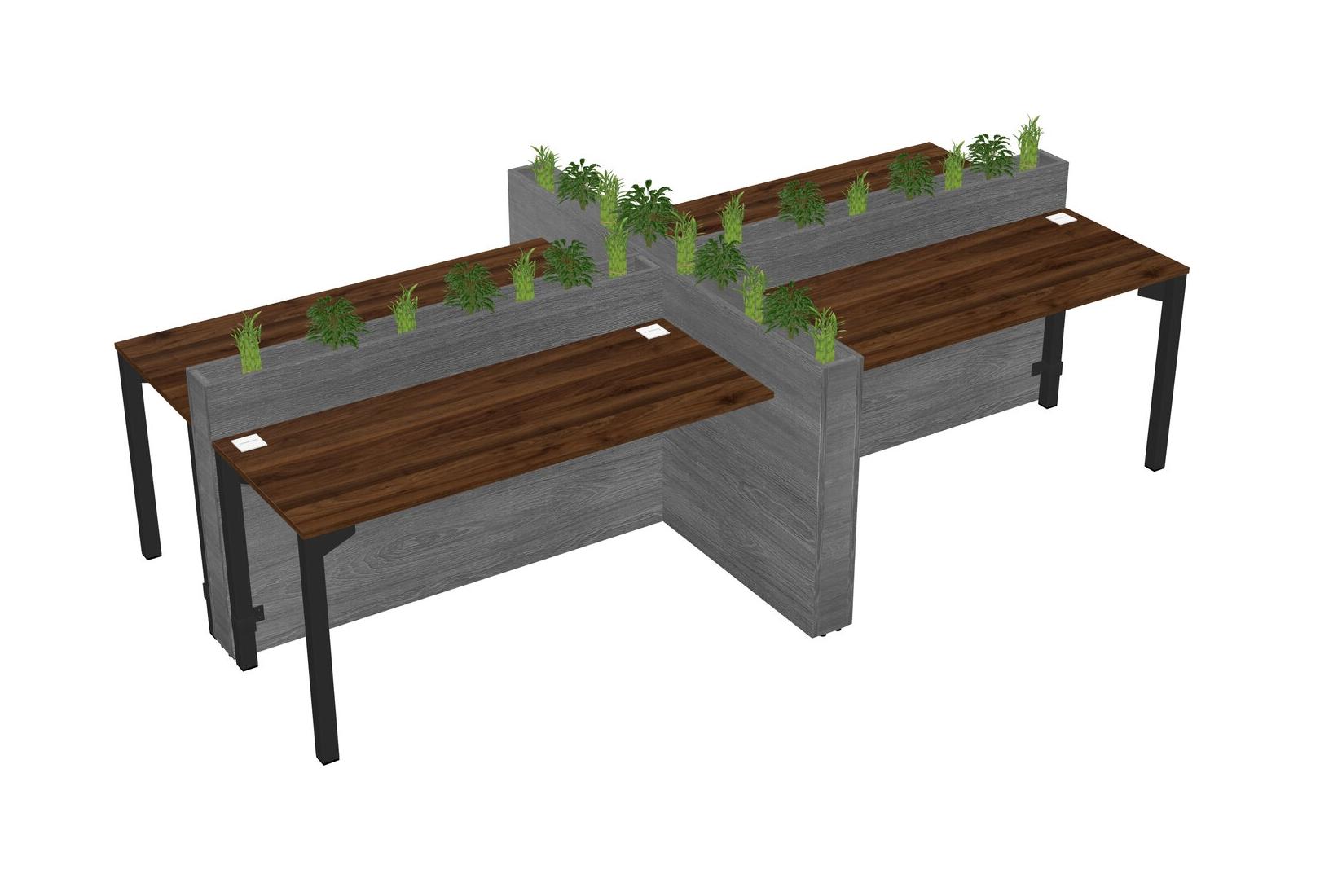 Columbia Walnut Rectangular Shared Office Desk For 4 Persons Let Nature Help Flourish Your Productivity The Base Comes With An Adjustable Shelf To Provide Space For Pots (Pots & Plants Sold Separately)