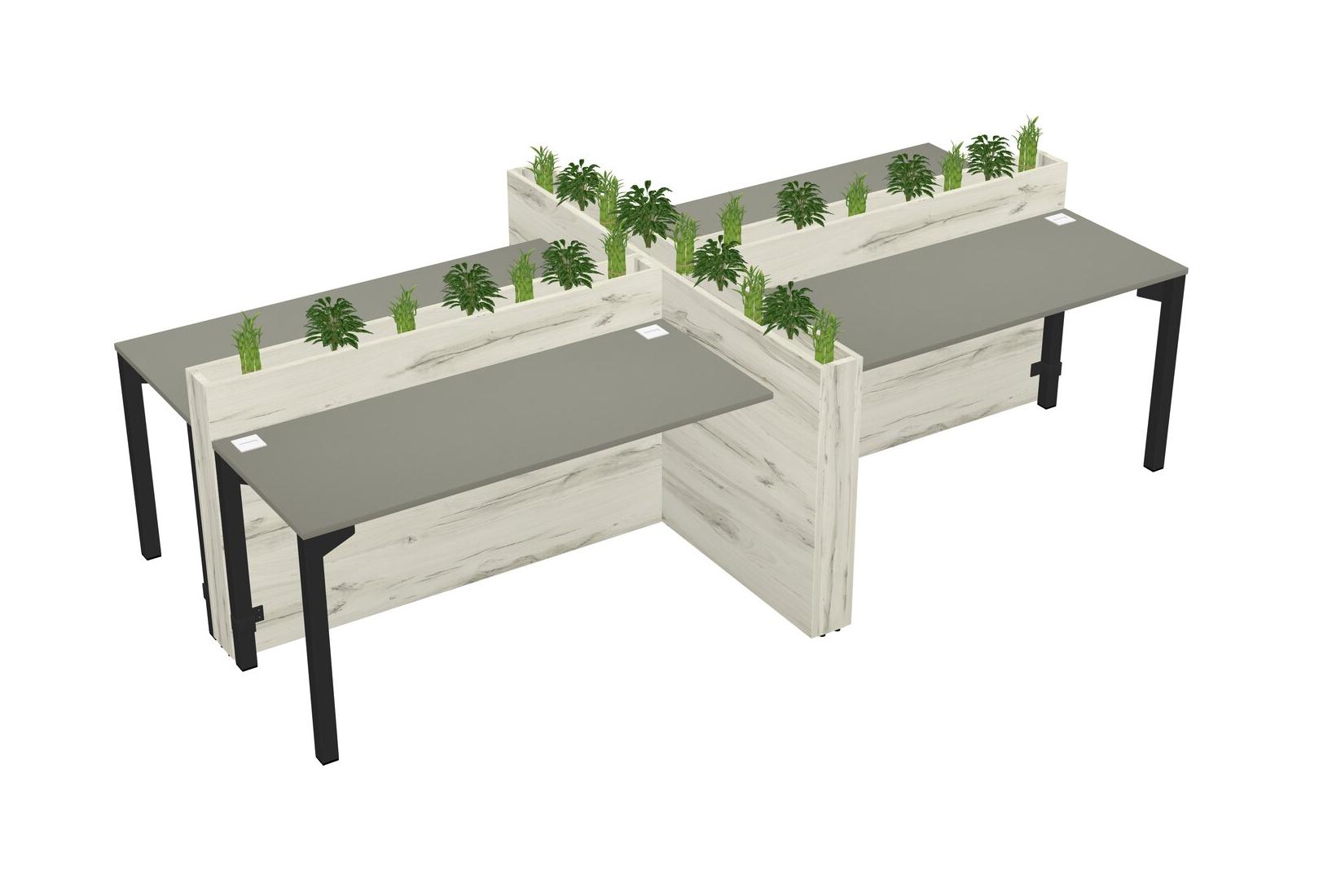 Grey Shadows Rectangular Shared Office Desk For 4 Persons Let Nature Help Flourish Your Productivity The Base Comes With An Adjustable Shelf To Provide Space For Pots (Pots & Plants Sold Separately)