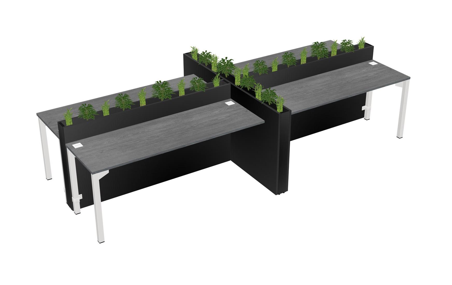 Grey Rectangular Shared Office Desk For 4 Persons Let Nature Help Flourish Your Productivity The Base Comes With An Adjustable Shelf To Provide Space For Pots (Pots & Plants Sold Separately)