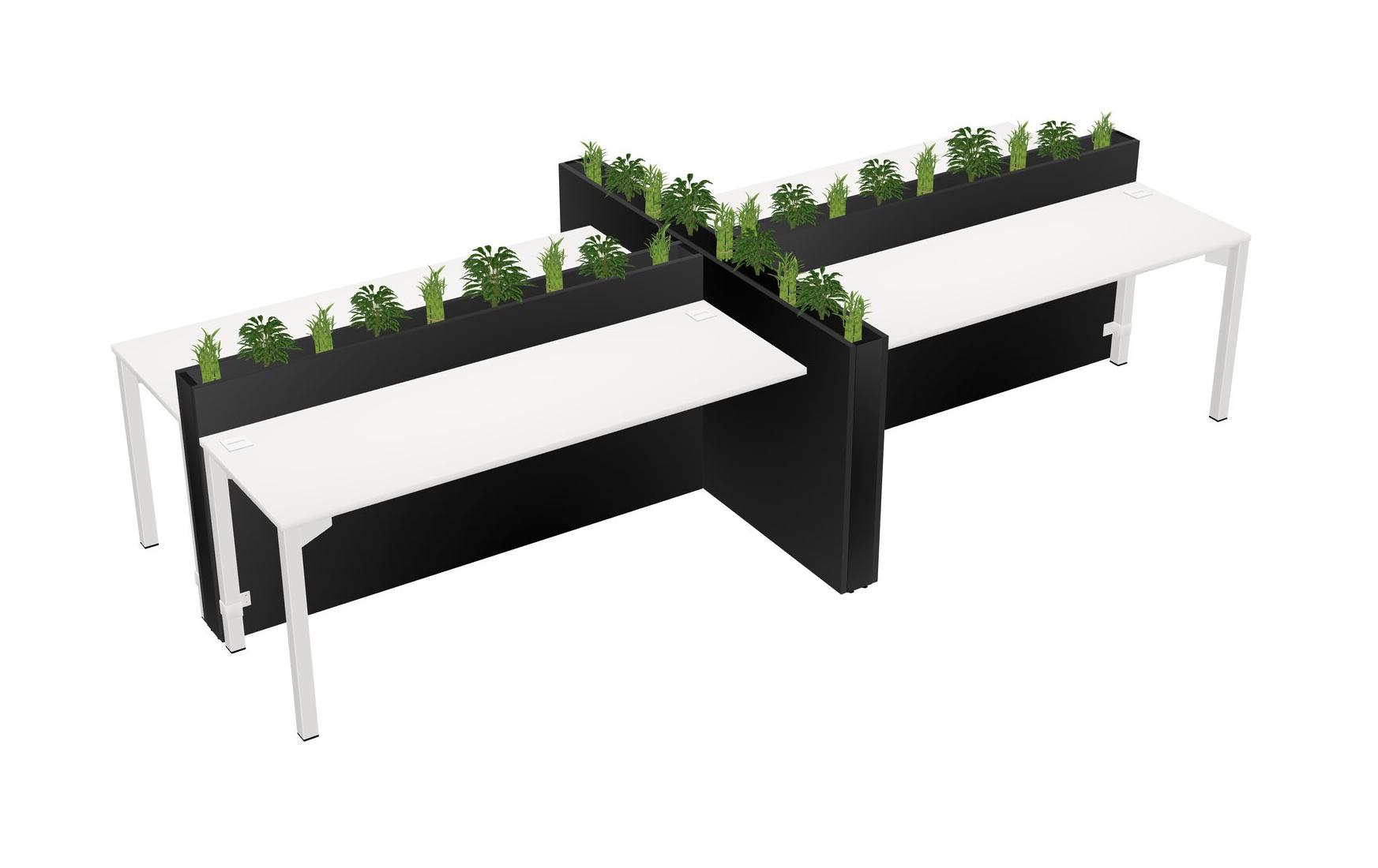 White Rectangular Shared Office Desk For 4 Persons Let Nature Help Flourish Your Productivity The Base Comes With An Adjustable Shelf To Provide Space For Pots (Pots & Plants Sold Separately)