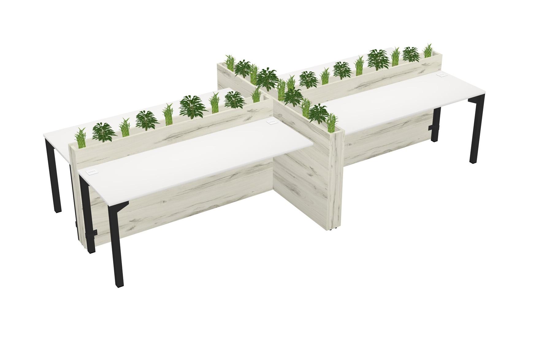 White Rectangular Shared Office Desk For 4 Persons Let Nature Help Flourish Your Productivity The Base Comes With An Adjustable Shelf To Provide Space For Pots (Pots & Plants Sold Separately)