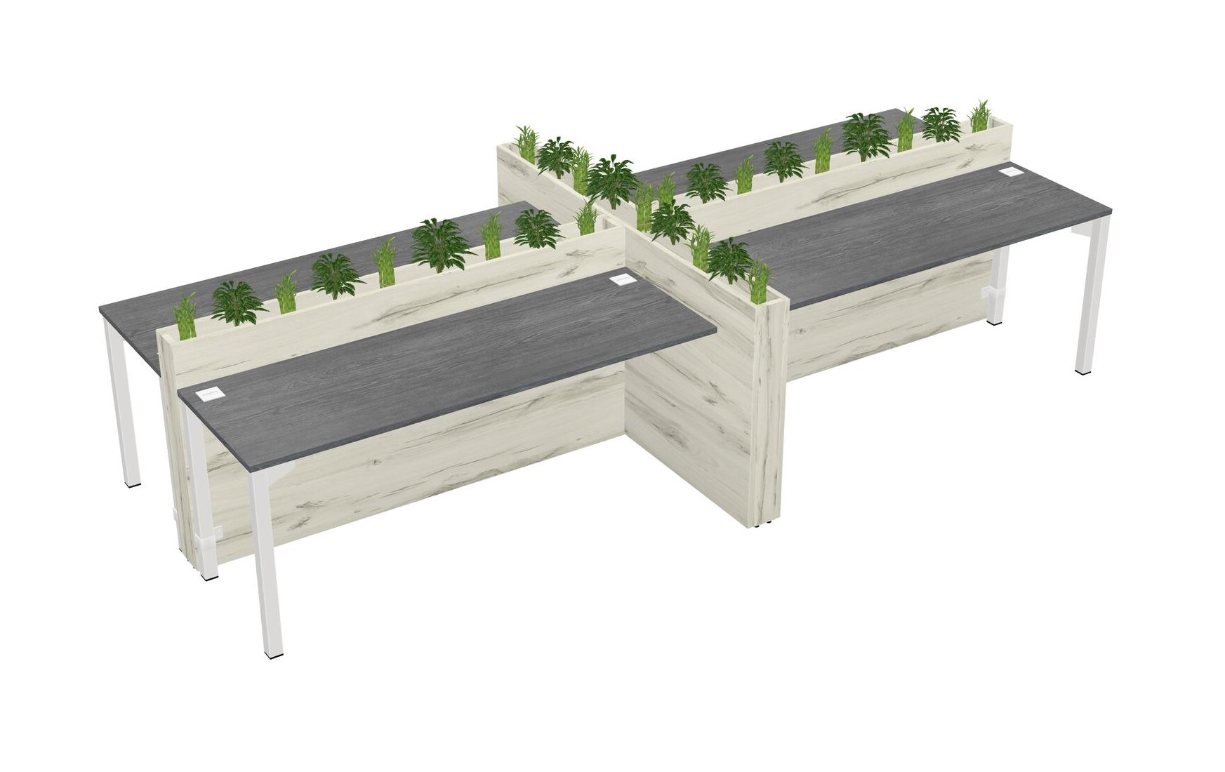 Grey Rectangular Shared Office Desk For 4 Persons Let Nature Help Flourish Your Productivity The Base Comes With An Adjustable Shelf To Provide Space For Pots (Pots & Plants Sold Separately)