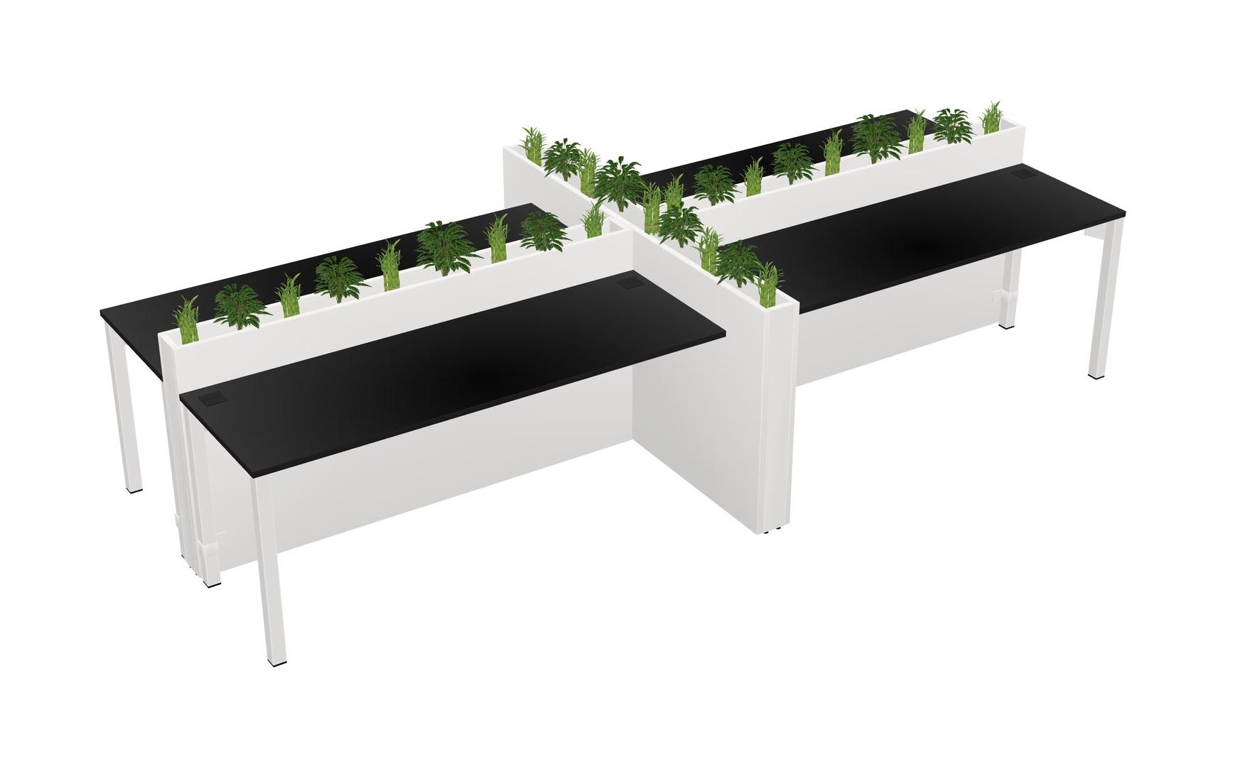Black Rectangular Shared Office Desk For 4 Persons Let Nature Help Flourish Your Productivity The Base Comes With An Adjustable Shelf To Provide Space For Pots (Pots & Plants Sold Separately)