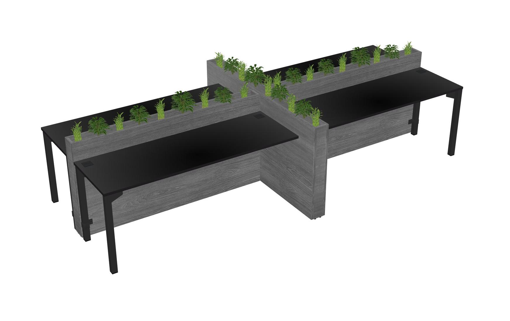 Black Rectangular Shared Office Desk For 4 Persons Let Nature Help Flourish Your Productivity The Base Comes With An Adjustable Shelf To Provide Space For Pots (Pots & Plants Sold Separately)