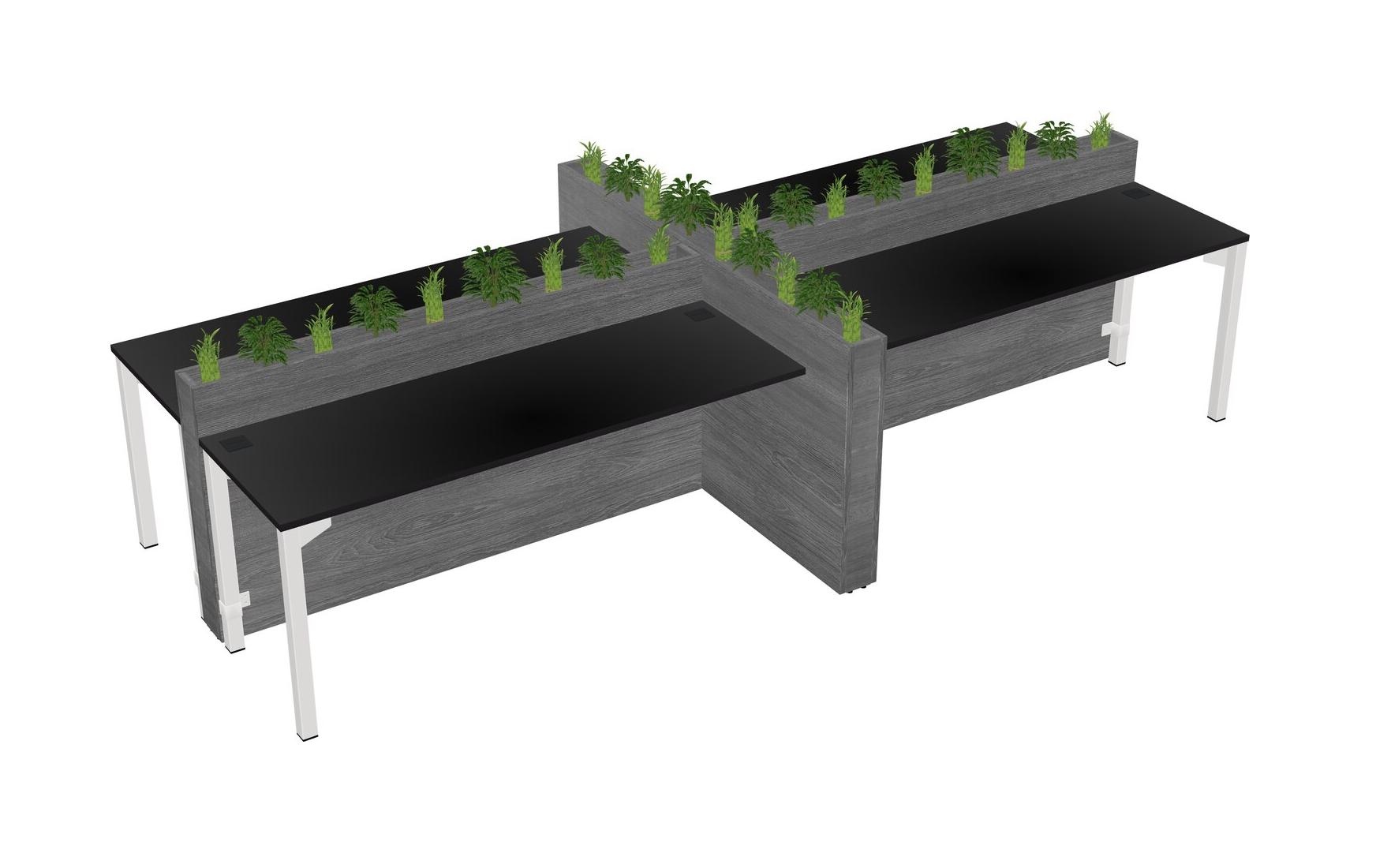 Black Rectangular Shared Office Desk For 4 Persons Let Nature Help Flourish Your Productivity The Base Comes With An Adjustable Shelf To Provide Space For Pots (Pots & Plants Sold Separately)
