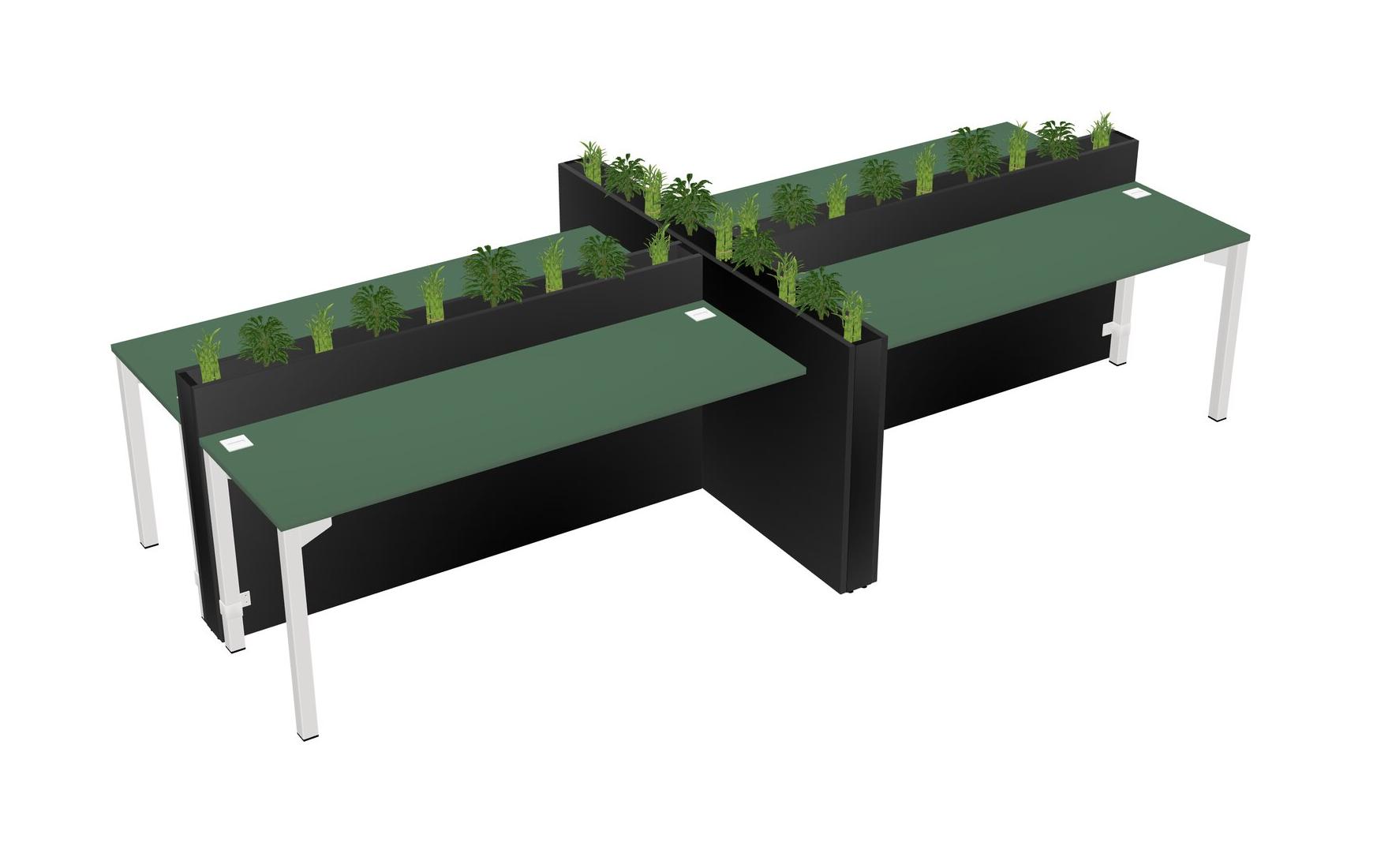 Green Rectangular Shared Office Desk For 4 Persons Let Nature Help Flourish Your Productivity The Base Comes With An Adjustable Shelf To Provide Space For Pots (Pots & Plants Sold Separately)