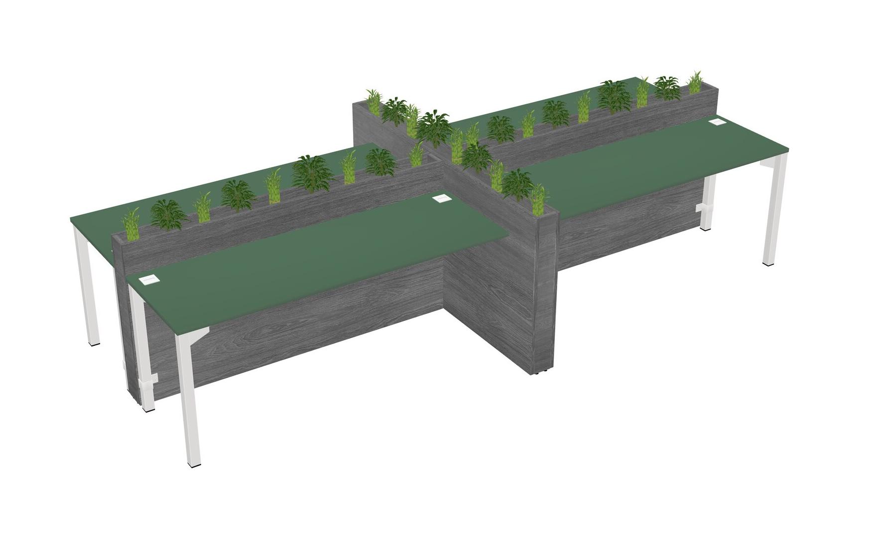 Green Rectangular Shared Office Desk For 4 Persons Let Nature Help Flourish Your Productivity The Base Comes With An Adjustable Shelf To Provide Space For Pots (Pots & Plants Sold Separately)