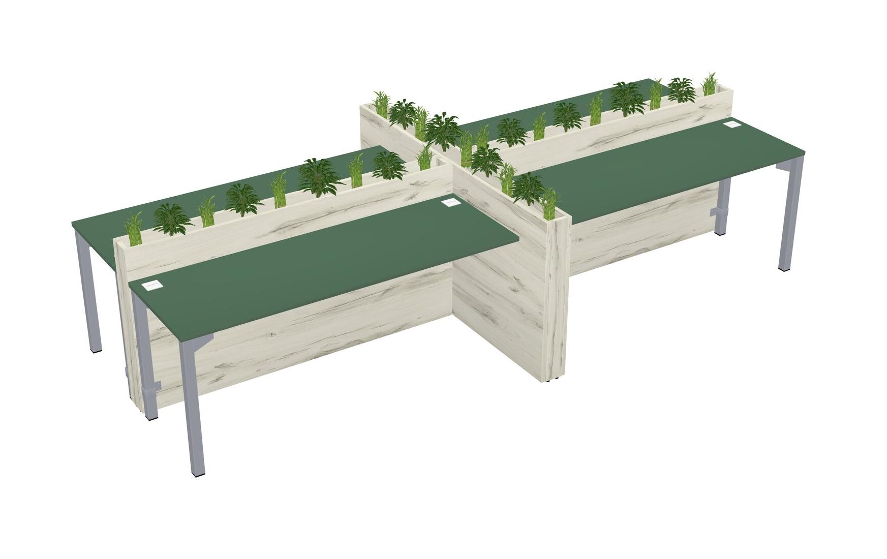 Green Rectangular Shared Office Desk For 4 Persons Let Nature Help Flourish Your Productivity The Base Comes With An Adjustable Shelf To Provide Space For Pots (Pots & Plants Sold Separately)