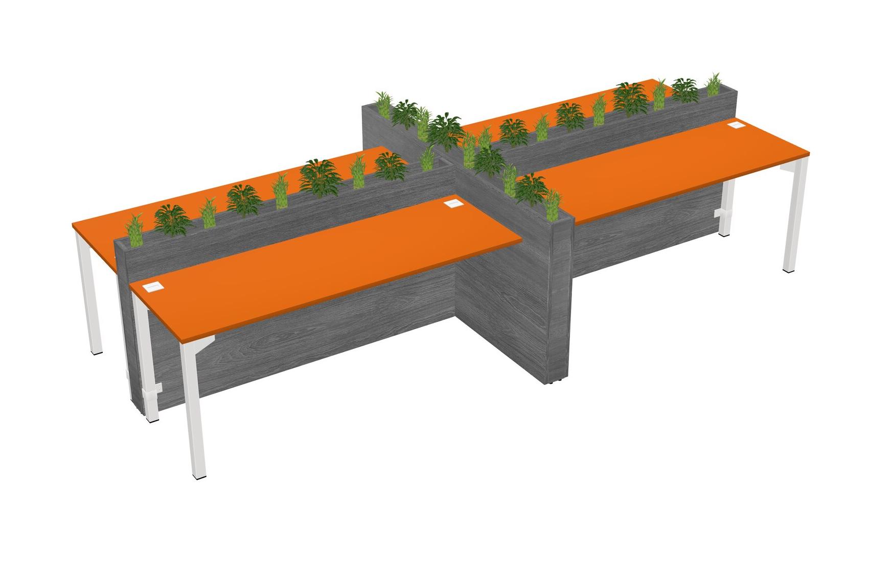 Orange Rectangular Shared Office Desk For 4 Persons Let Nature Help Flourish Your Productivity The Base Comes With An Adjustable Shelf To Provide Space For Pots (Pots & Plants Sold Separately)
