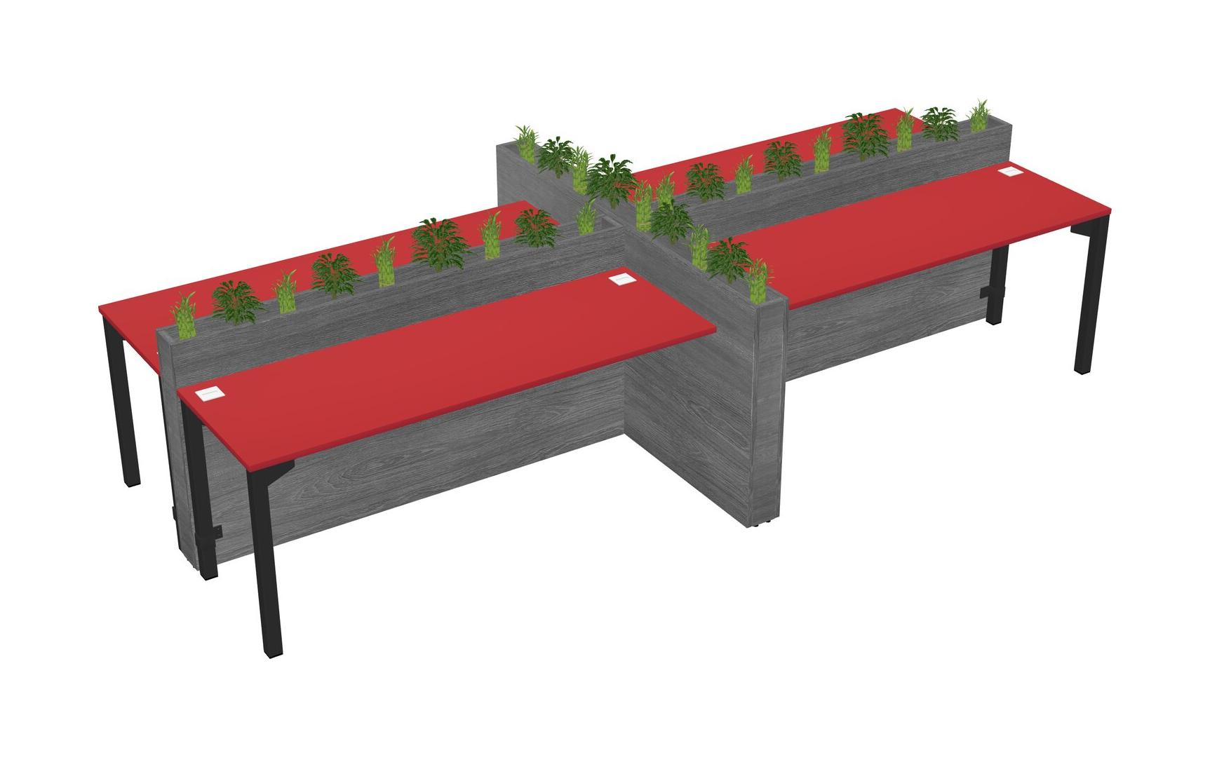 Prism Red Rectangular Shared Office Desk For 4 Persons Let Nature Help Flourish Your Productivity The Base Comes With An Adjustable Shelf To Provide Space For Pots (Pots & Plants Sold Separately)