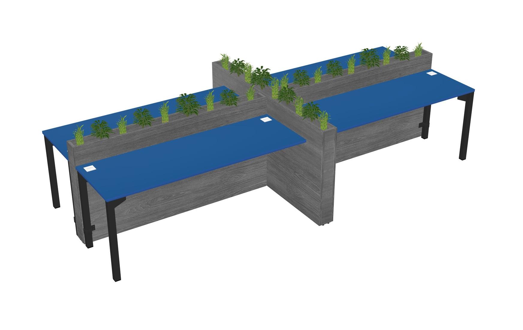 Prism Blue Rectangular Shared Office Desk For 4 Persons Let Nature Help Flourish Your Productivity The Base Comes With An Adjustable Shelf To Provide Space For Pots (Pots & Plants Sold Separately)