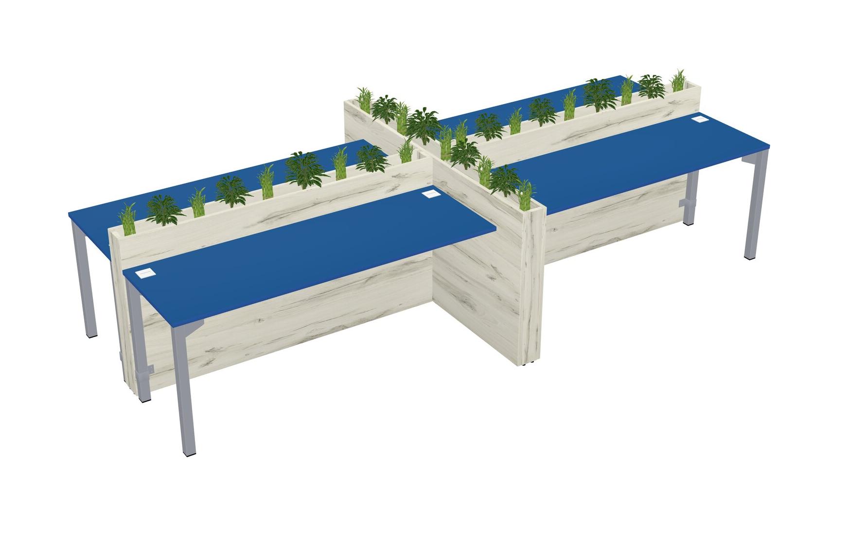 Prism Blue Rectangular Shared Office Desk For 4 Persons Let Nature Help Flourish Your Productivity The Base Comes With An Adjustable Shelf To Provide Space For Pots (Pots & Plants Sold Separately)