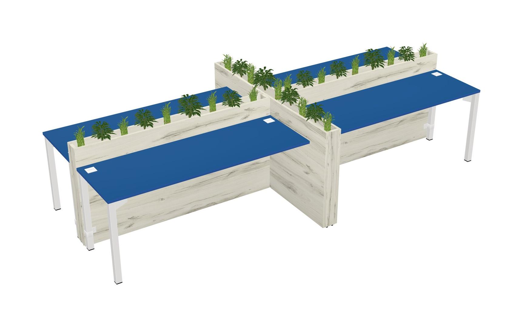 Prism Blue Rectangular Shared Office Desk For 4 Persons Let Nature Help Flourish Your Productivity The Base Comes With An Adjustable Shelf To Provide Space For Pots (Pots & Plants Sold Separately)