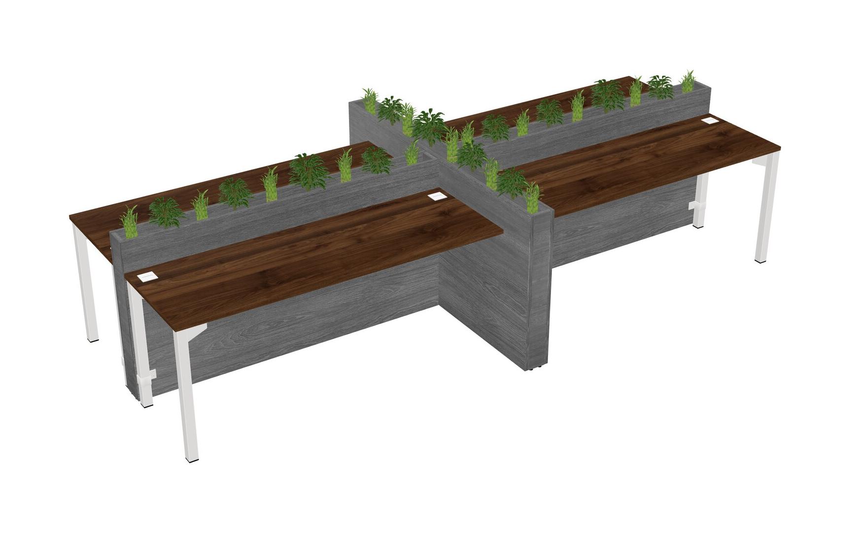 Columbia Walnut Rectangular Shared Office Desk For 4 Persons Let Nature Help Flourish Your Productivity The Base Comes With An Adjustable Shelf To Provide Space For Pots (Pots & Plants Sold Separately)