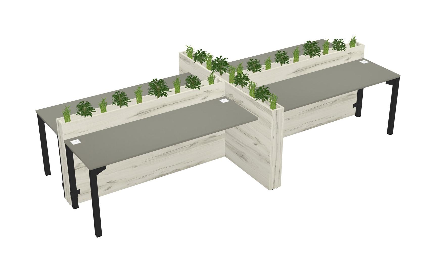 Grey Shadows Rectangular Shared Office Desk For 4 Persons Let Nature Help Flourish Your Productivity The Base Comes With An Adjustable Shelf To Provide Space For Pots (Pots & Plants Sold Separately)