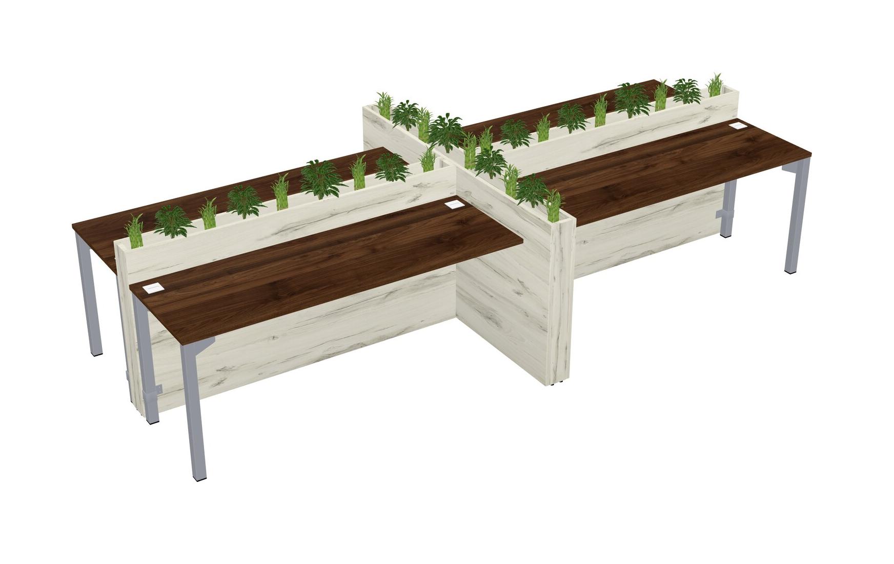 Columbia Walnut Rectangular Shared Office Desk For 4 Persons Let Nature Help Flourish Your Productivity The Base Comes With An Adjustable Shelf To Provide Space For Pots (Pots & Plants Sold Separately)