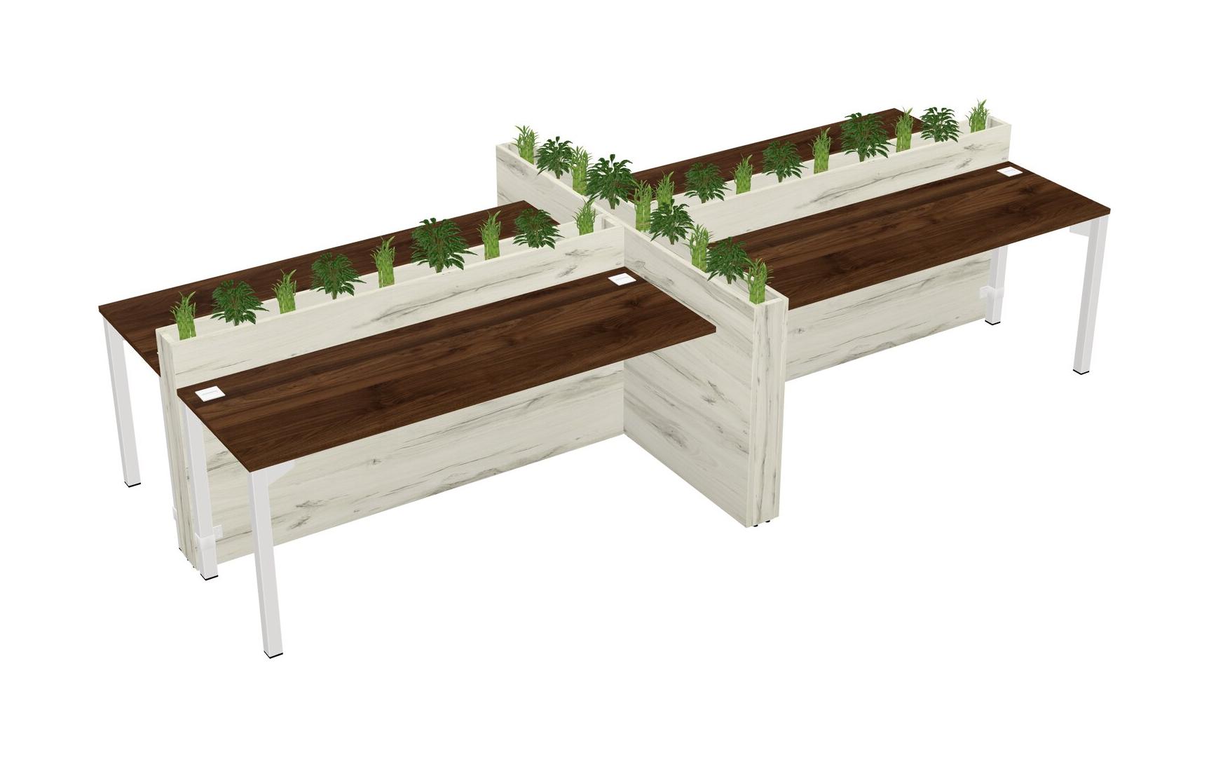 Columbia Walnut Rectangular Shared Office Desk For 4 Persons Let Nature Help Flourish Your Productivity The Base Comes With An Adjustable Shelf To Provide Space For Pots (Pots & Plants Sold Separately)