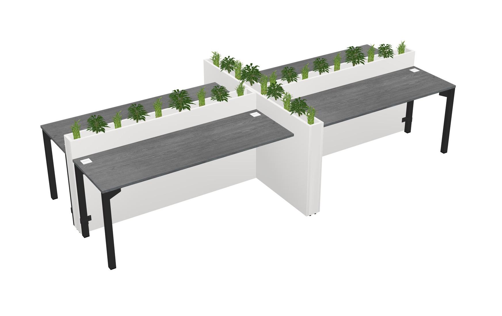 Grey Rectangular Shared Office Desk For 4 Persons Let Nature Help Flourish Your Productivity The Base Comes With An Adjustable Shelf To Provide Space For Pots (Pots & Plants Sold Separately)