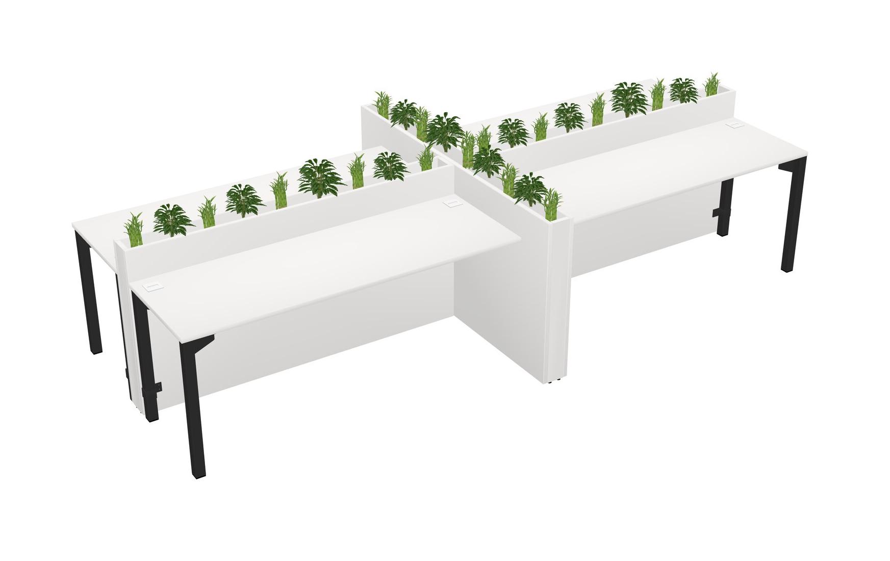White Rectangular Shared Office Desk For 4 Persons Let Nature Help Flourish Your Productivity The Base Comes With An Adjustable Shelf To Provide Space For Pots (Pots & Plants Sold Separately)