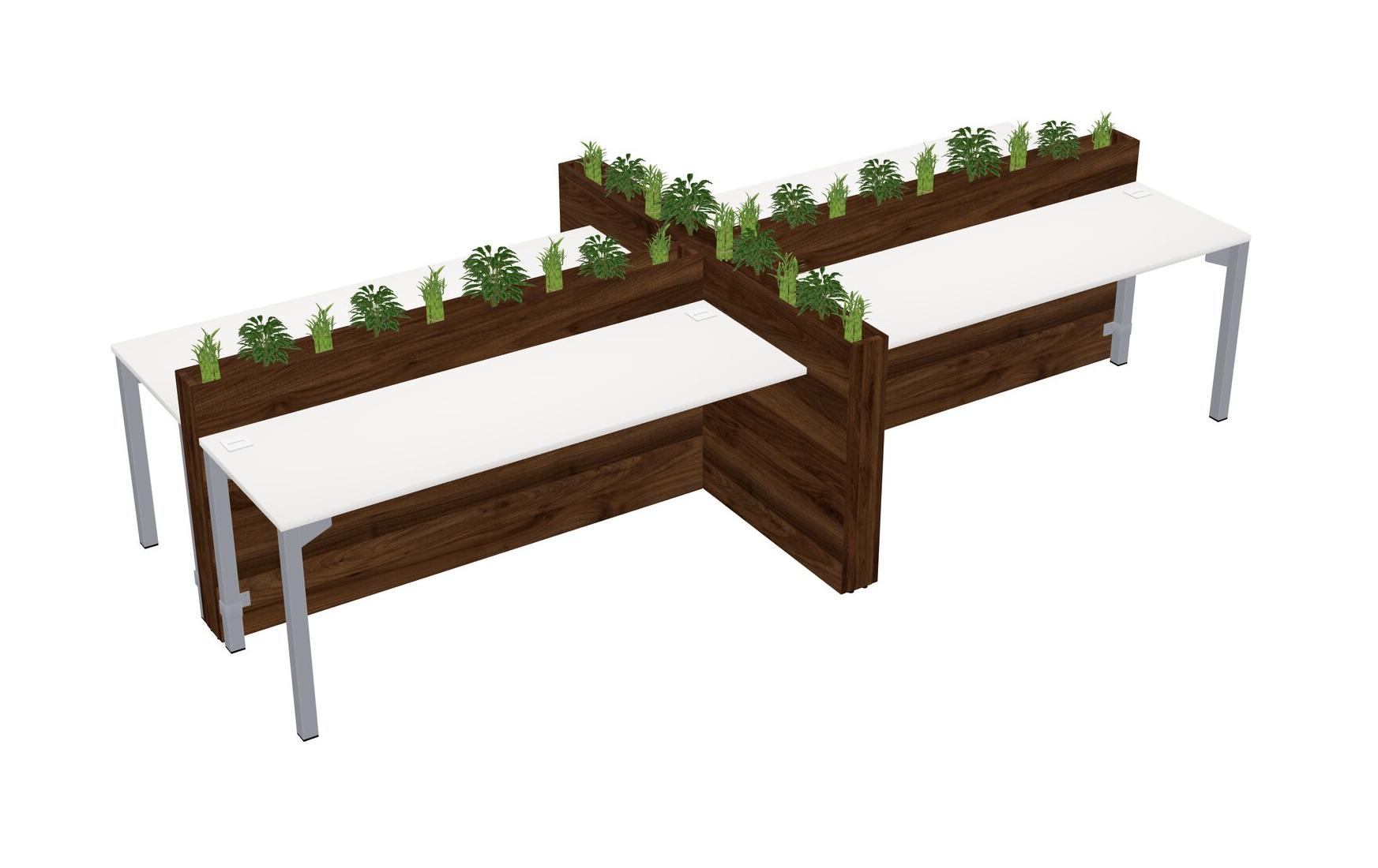 White Rectangular Shared Office Desk For 4 Persons Let Nature Help Flourish Your Productivity The Base Comes With An Adjustable Shelf To Provide Space For Pots (Pots & Plants Sold Separately)