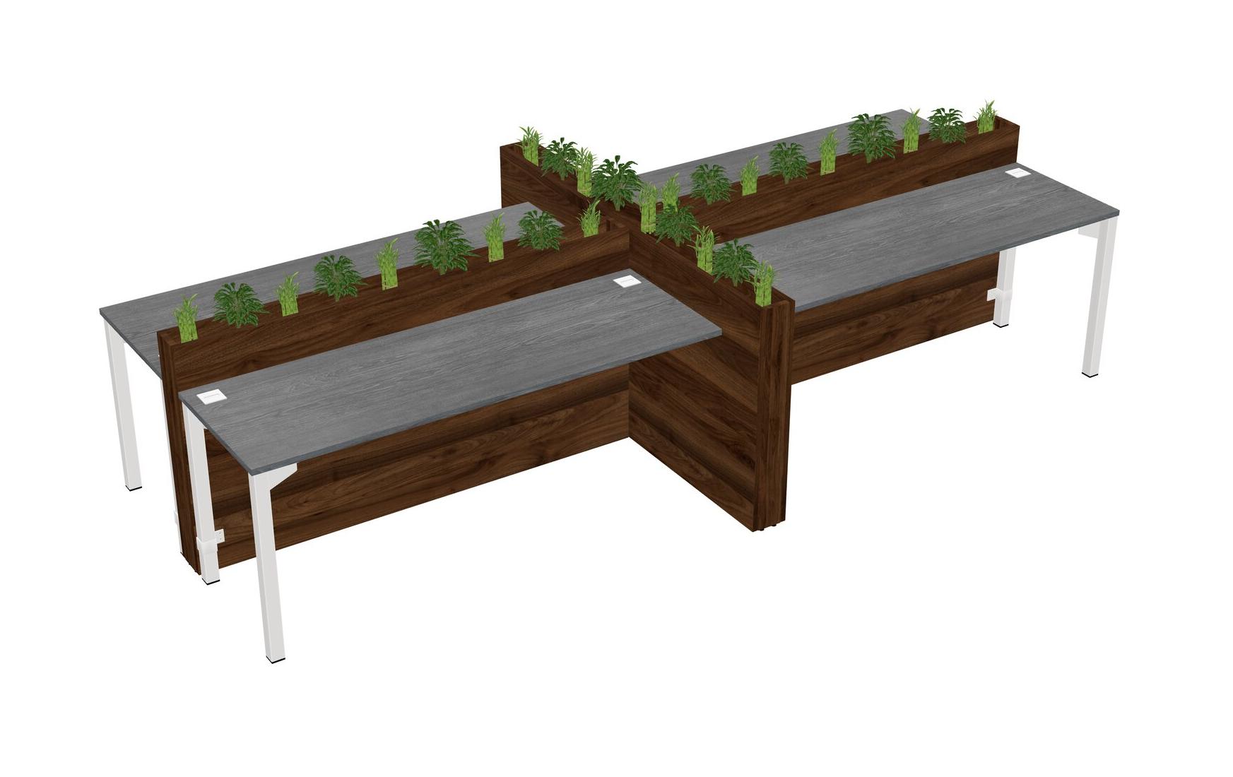Grey Rectangular Shared Office Desk For 4 Persons Let Nature Help Flourish Your Productivity The Base Comes With An Adjustable Shelf To Provide Space For Pots (Pots & Plants Sold Separately)