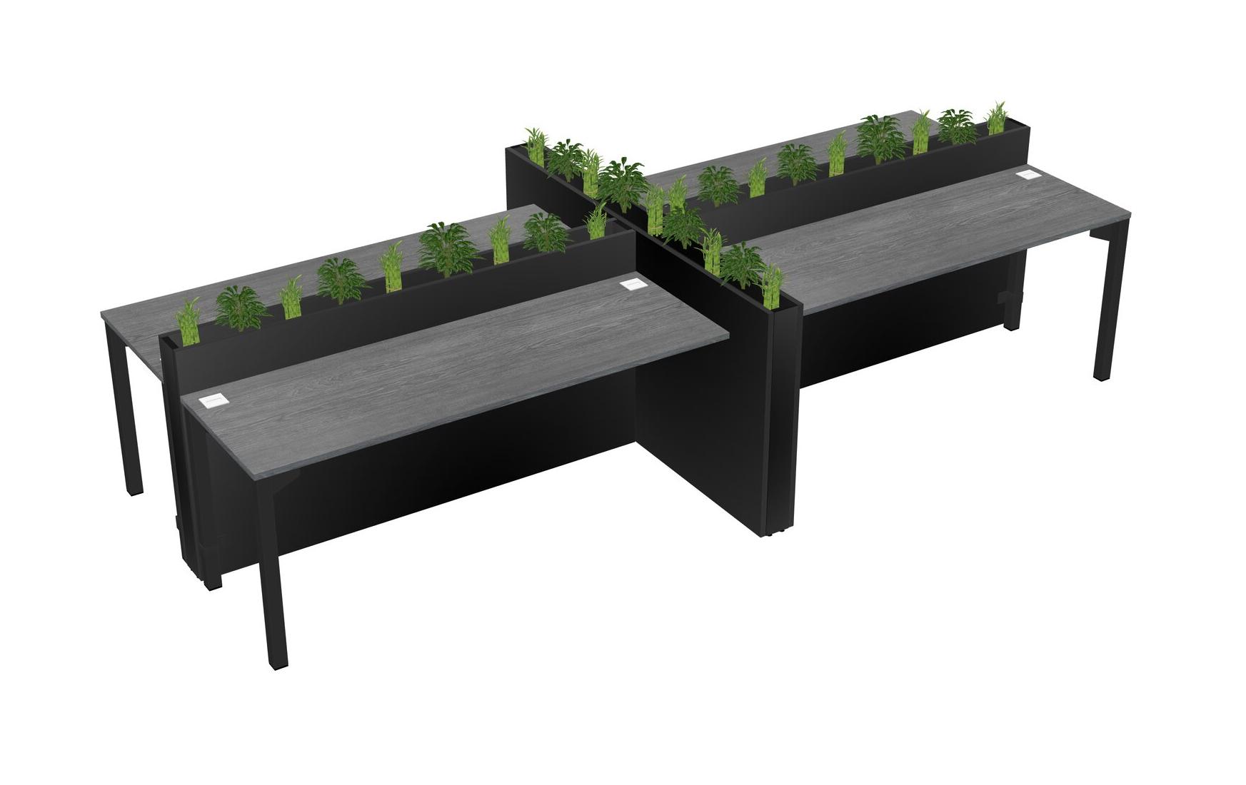 Grey Rectangular Shared Office Desk For 4 Persons Let Nature Help Flourish Your Productivity The Base Comes With An Adjustable Shelf To Provide Space For Pots (Pots & Plants Sold Separately)