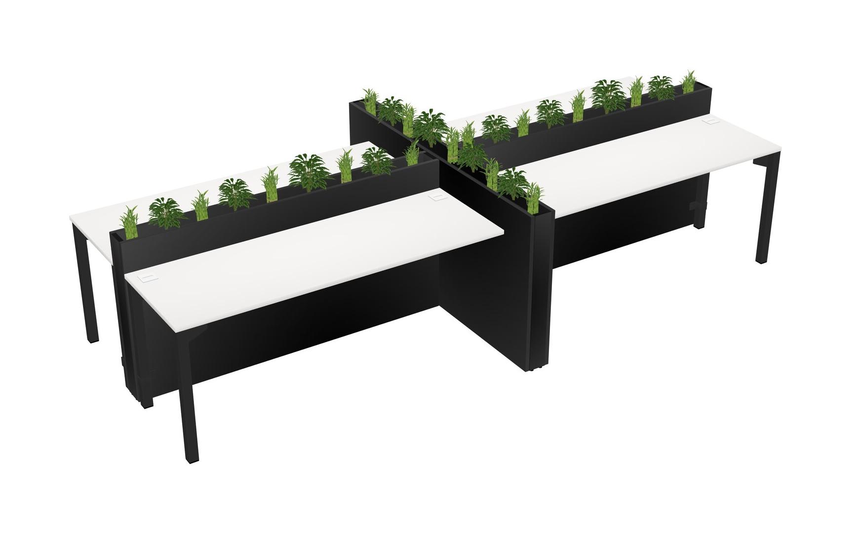 White Rectangular Shared Office Desk For 4 Persons Let Nature Help Flourish Your Productivity The Base Comes With An Adjustable Shelf To Provide Space For Pots (Pots & Plants Sold Separately)