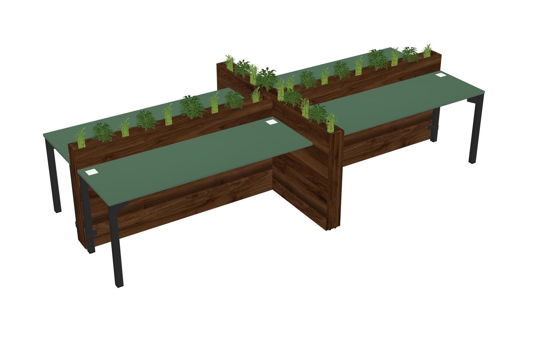 Green Rectangular Shared Office Desk For 4 Persons Let Nature Help Flourish Your Productivity The Base Comes With An Adjustable Shelf To Provide Space For Pots (Pots & Plants Sold Separately)