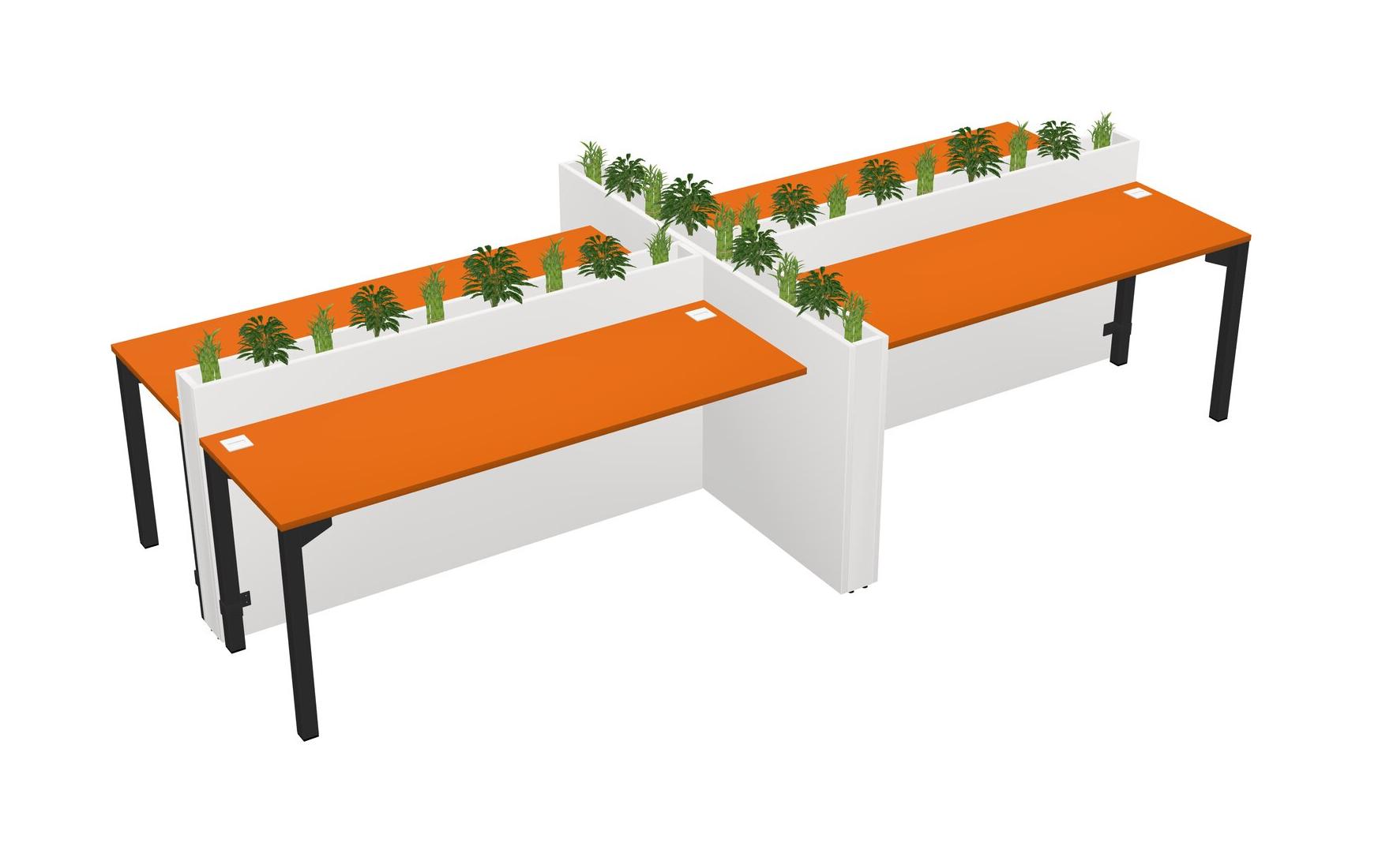 Orange Rectangular Shared Office Desk For 4 Persons Let Nature Help Flourish Your Productivity The Base Comes With An Adjustable Shelf To Provide Space For Pots (Pots & Plants Sold Separately)