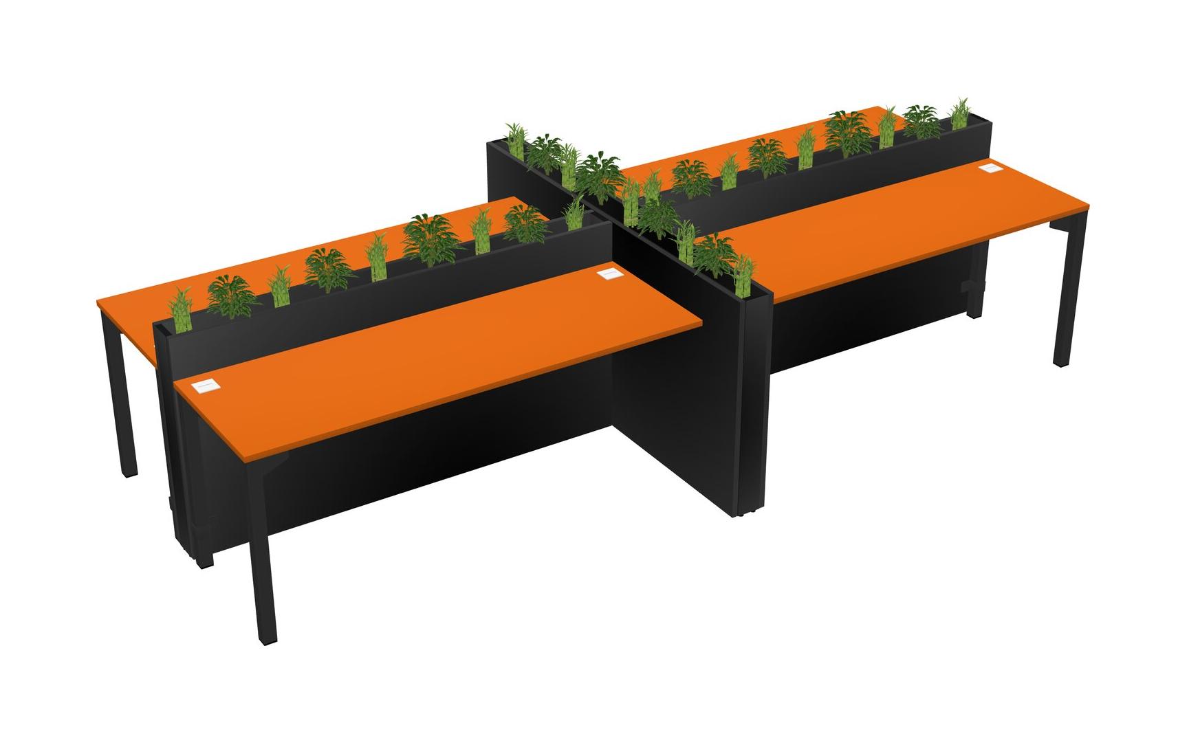 Orange Rectangular Shared Office Desk For 4 Persons Let Nature Help Flourish Your Productivity The Base Comes With An Adjustable Shelf To Provide Space For Pots (Pots & Plants Sold Separately)