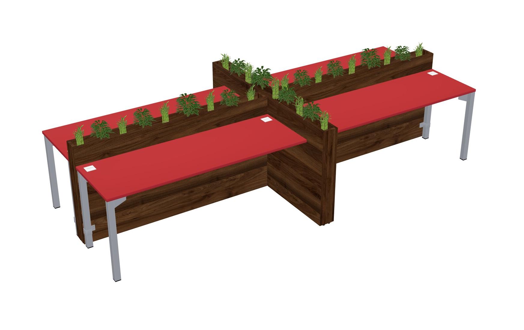 Prism Red Rectangular Shared Office Desk For 4 Persons Let Nature Help Flourish Your Productivity The Base Comes With An Adjustable Shelf To Provide Space For Pots (Pots & Plants Sold Separately)