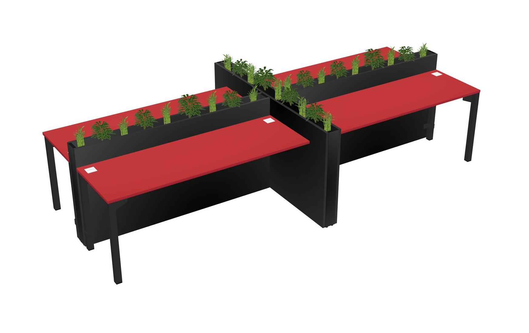 Prism Red Rectangular Shared Office Desk For 4 Persons Let Nature Help Flourish Your Productivity The Base Comes With An Adjustable Shelf To Provide Space For Pots (Pots & Plants Sold Separately)