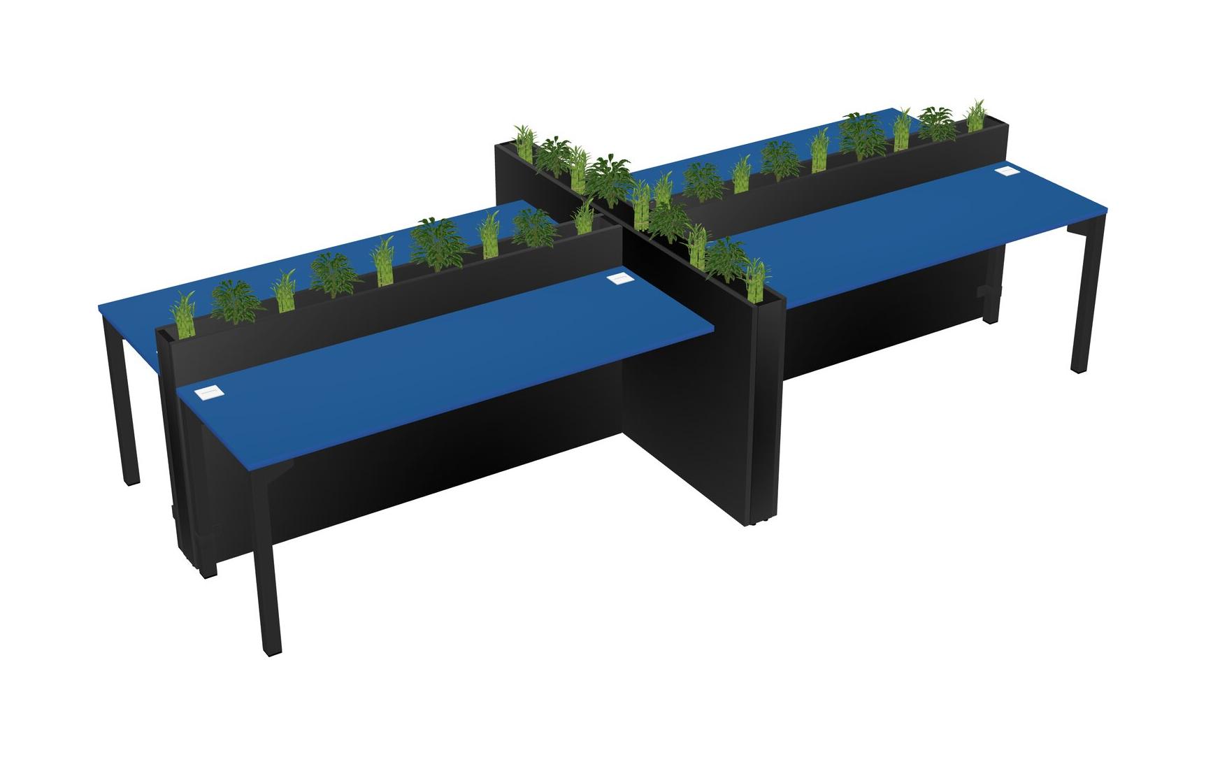 Prism Blue Rectangular Shared Office Desk For 4 Persons Let Nature Help Flourish Your Productivity The Base Comes With An Adjustable Shelf To Provide Space For Pots (Pots & Plants Sold Separately)