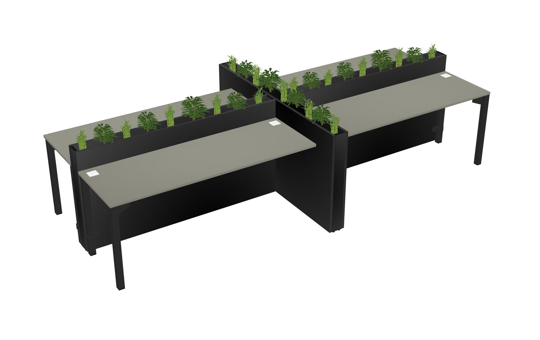 Grey Shadows Rectangular Shared Office Desk For 4 Persons Let Nature Help Flourish Your Productivity The Base Comes With An Adjustable Shelf To Provide Space For Pots (Pots & Plants Sold Separately)