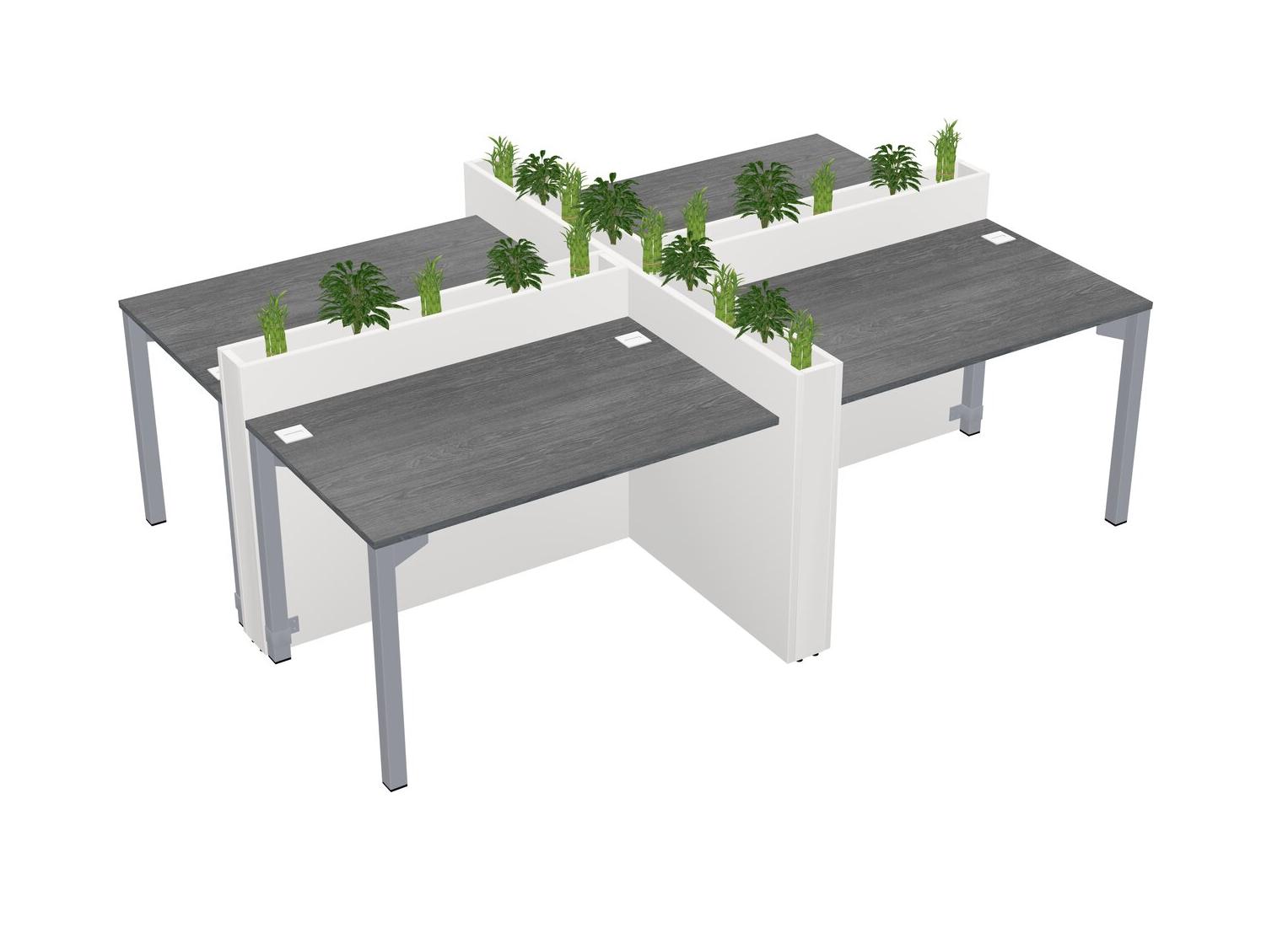 Grey Rectangular Shared Office Desk For 4 Persons Let Nature Help Flourish Your Productivity The Base Comes With An Adjustable Shelf To Provide Space For Pots (Pots & Plants Sold Separately)