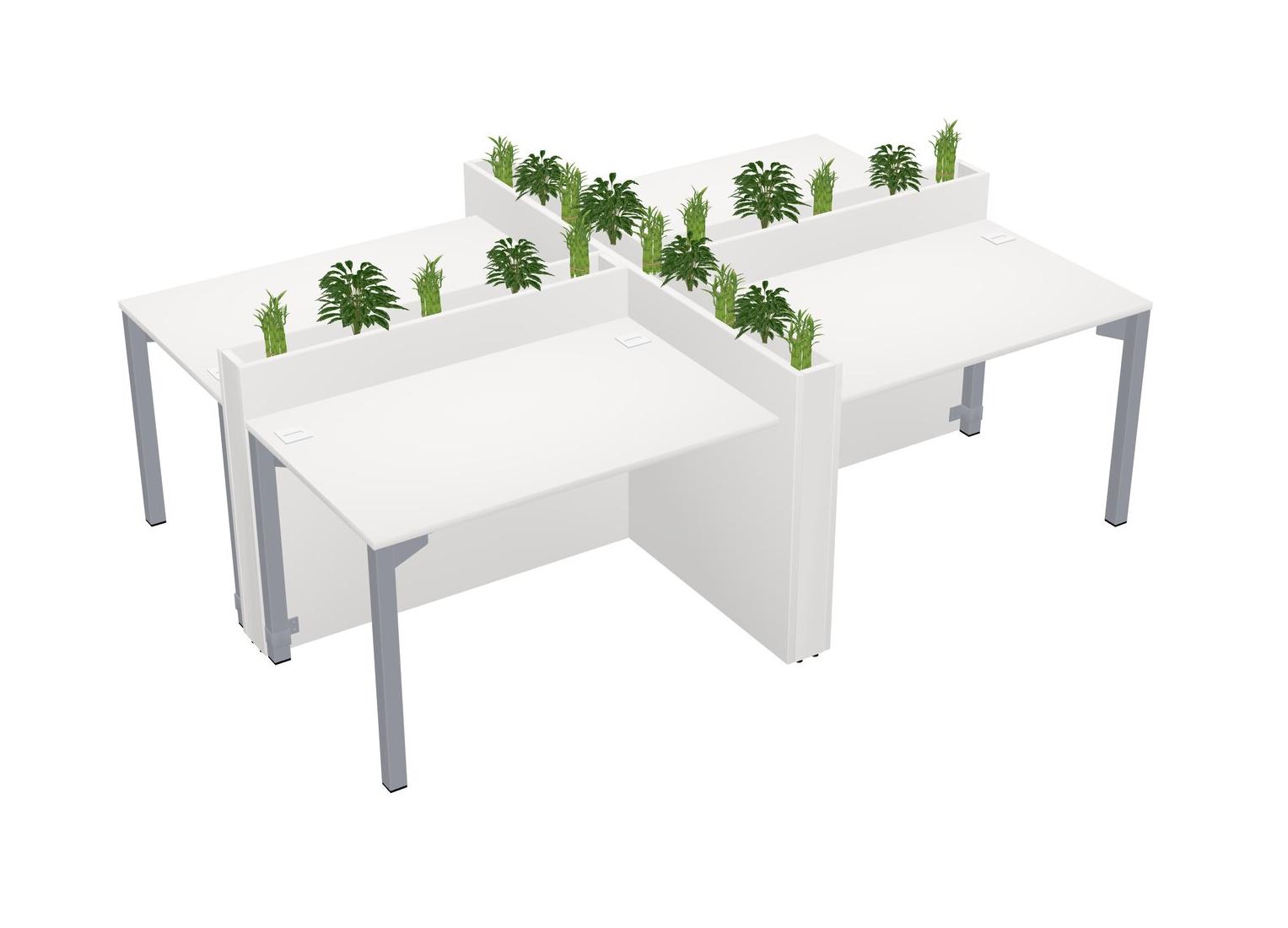White Rectangular Shared Office Desk For 4 Persons Let Nature Help Flourish Your Productivity The Base Comes With An Adjustable Shelf To Provide Space For Pots (Pots & Plants Sold Separately)