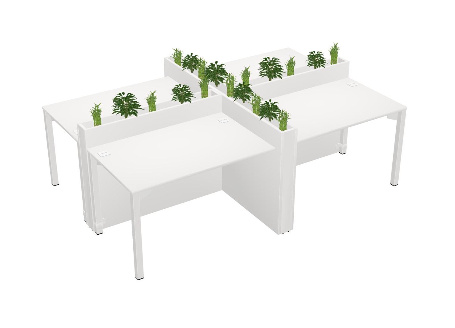 White Rectangular Shared Office Desk For 4 Persons Let Nature Help Flourish Your Productivity The Base Comes With An Adjustable Shelf To Provide Space For Pots (Pots & Plants Sold Separately)