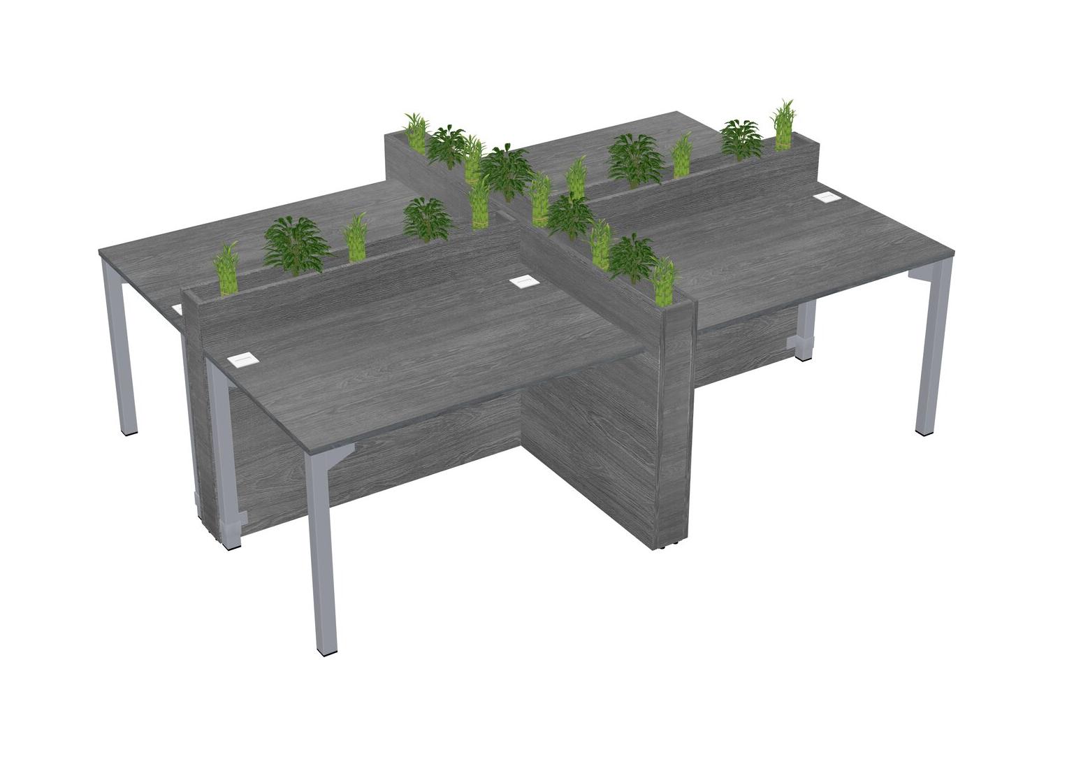 Grey Rectangular Shared Office Desk For 4 Persons Let Nature Help Flourish Your Productivity The Base Comes With An Adjustable Shelf To Provide Space For Pots (Pots & Plants Sold Separately)