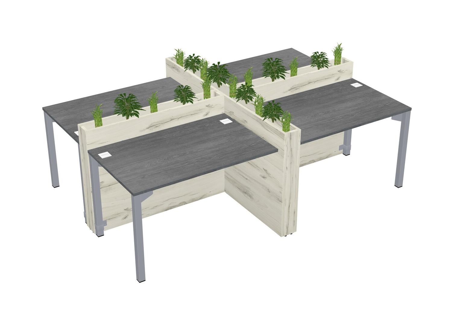 Grey Rectangular Shared Office Desk For 4 Persons Let Nature Help Flourish Your Productivity The Base Comes With An Adjustable Shelf To Provide Space For Pots (Pots & Plants Sold Separately)