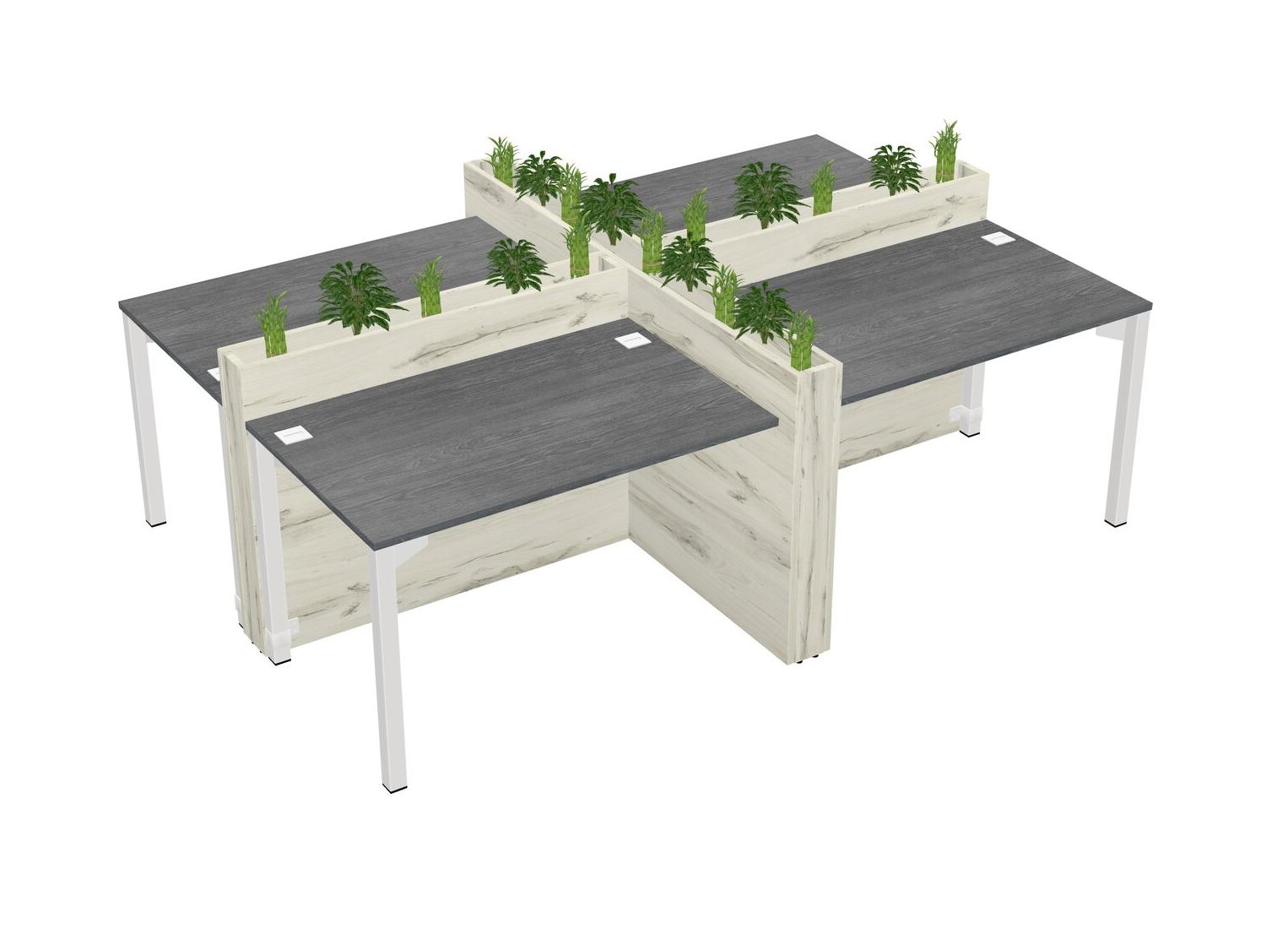 Grey Rectangular Shared Office Desk For 4 Persons Let Nature Help Flourish Your Productivity The Base Comes With An Adjustable Shelf To Provide Space For Pots (Pots & Plants Sold Separately)