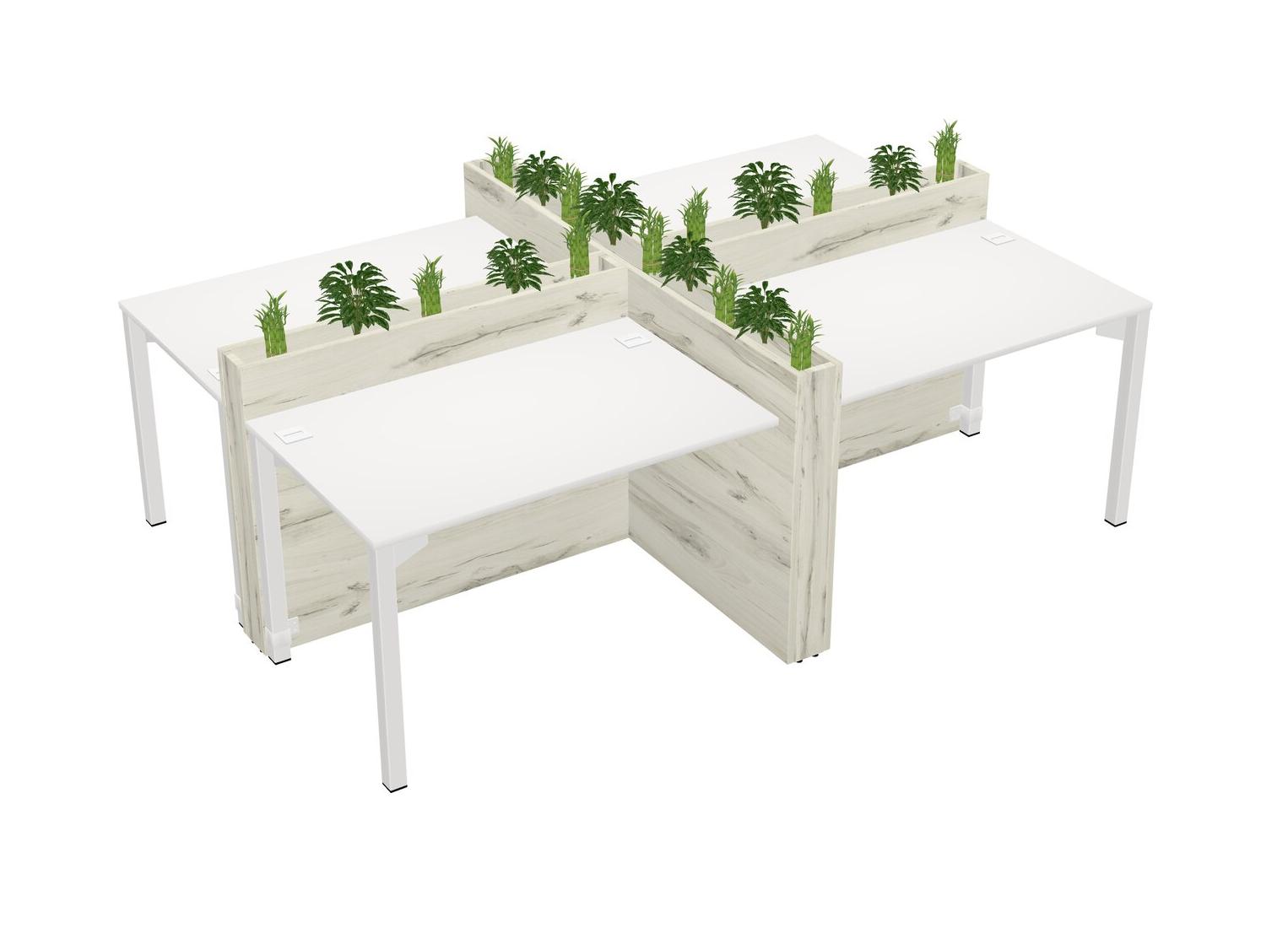 White Rectangular Shared Office Desk For 4 Persons Let Nature Help Flourish Your Productivity The Base Comes With An Adjustable Shelf To Provide Space For Pots (Pots & Plants Sold Separately)