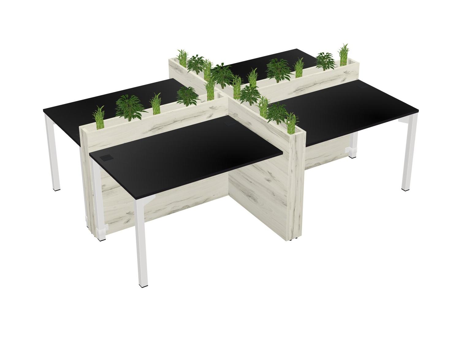 Black Rectangular Shared Office Desk For 4 Persons Let Nature Help Flourish Your Productivity The Base Comes With An Adjustable Shelf To Provide Space For Pots (Pots & Plants Sold Separately)
