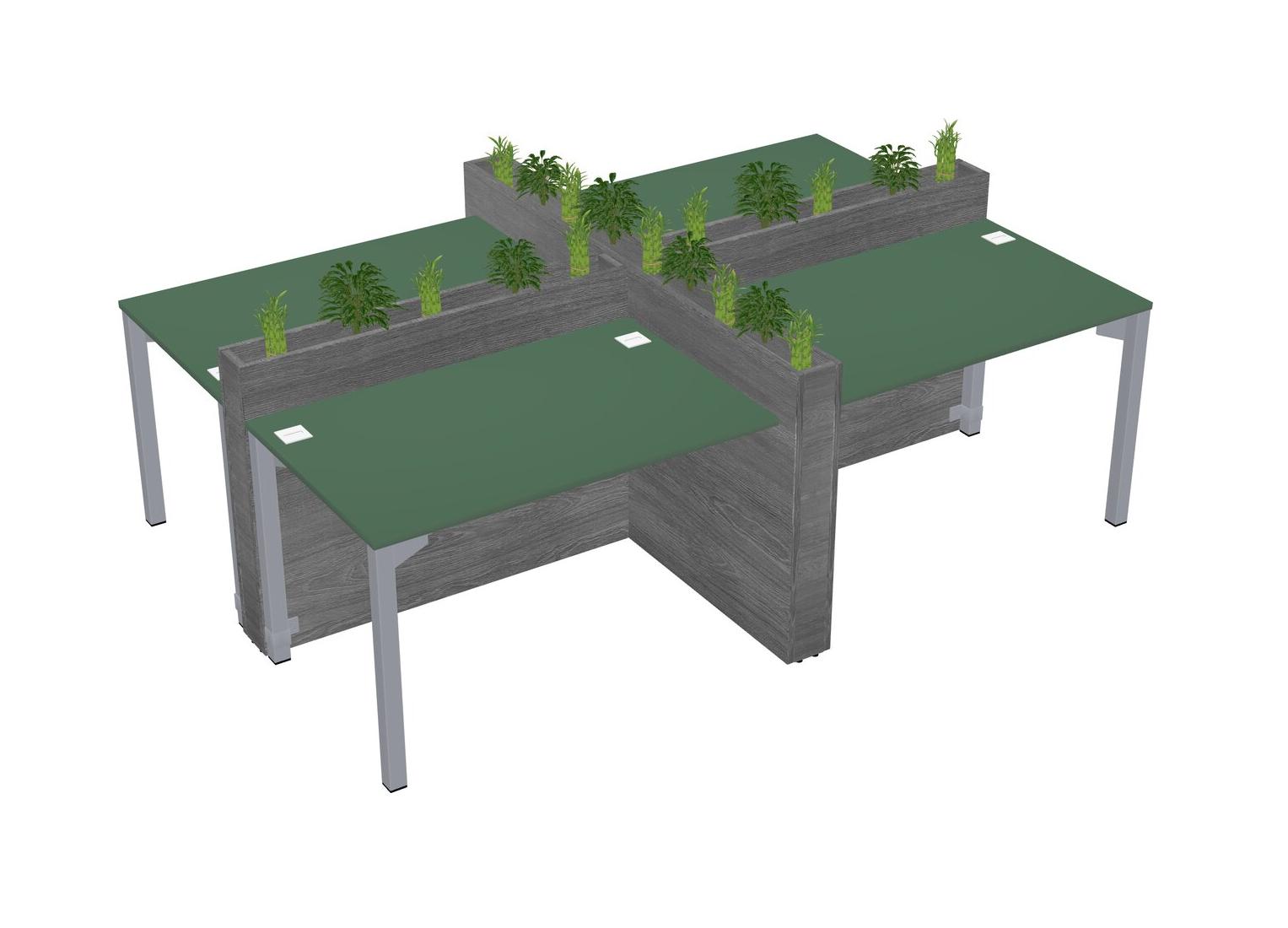 Green Rectangular Shared Office Desk For 4 Persons Let Nature Help Flourish Your Productivity The Base Comes With An Adjustable Shelf To Provide Space For Pots (Pots & Plants Sold Separately)
