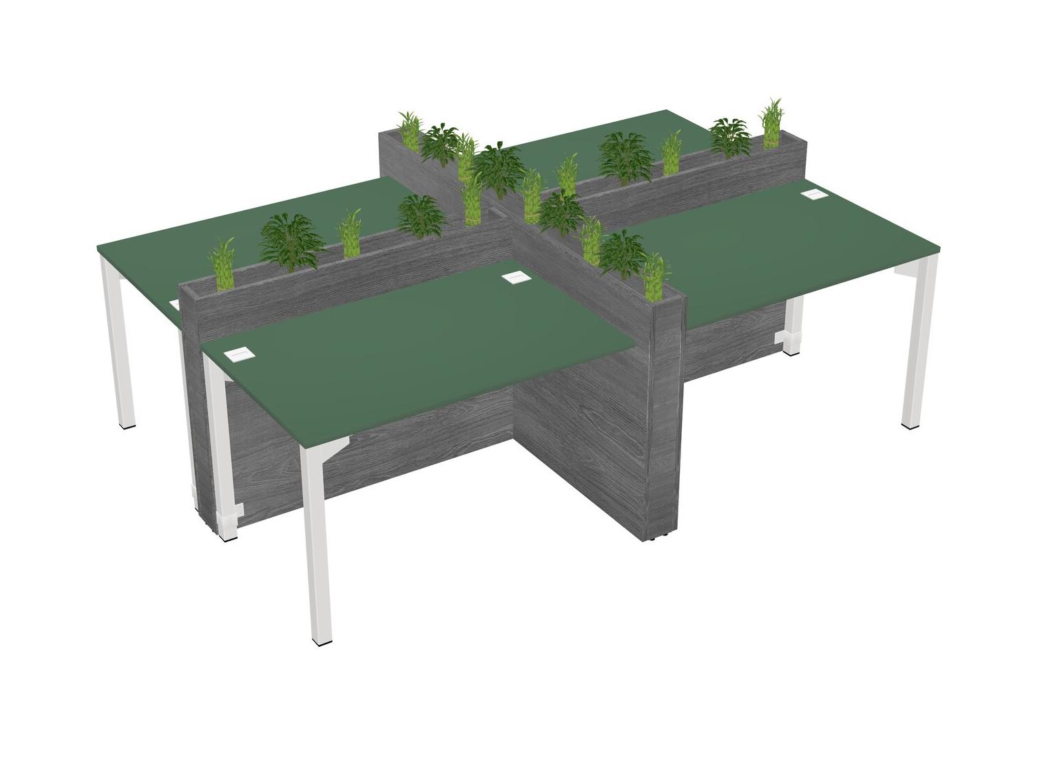 Green Rectangular Shared Office Desk For 4 Persons Let Nature Help Flourish Your Productivity The Base Comes With An Adjustable Shelf To Provide Space For Pots (Pots & Plants Sold Separately)