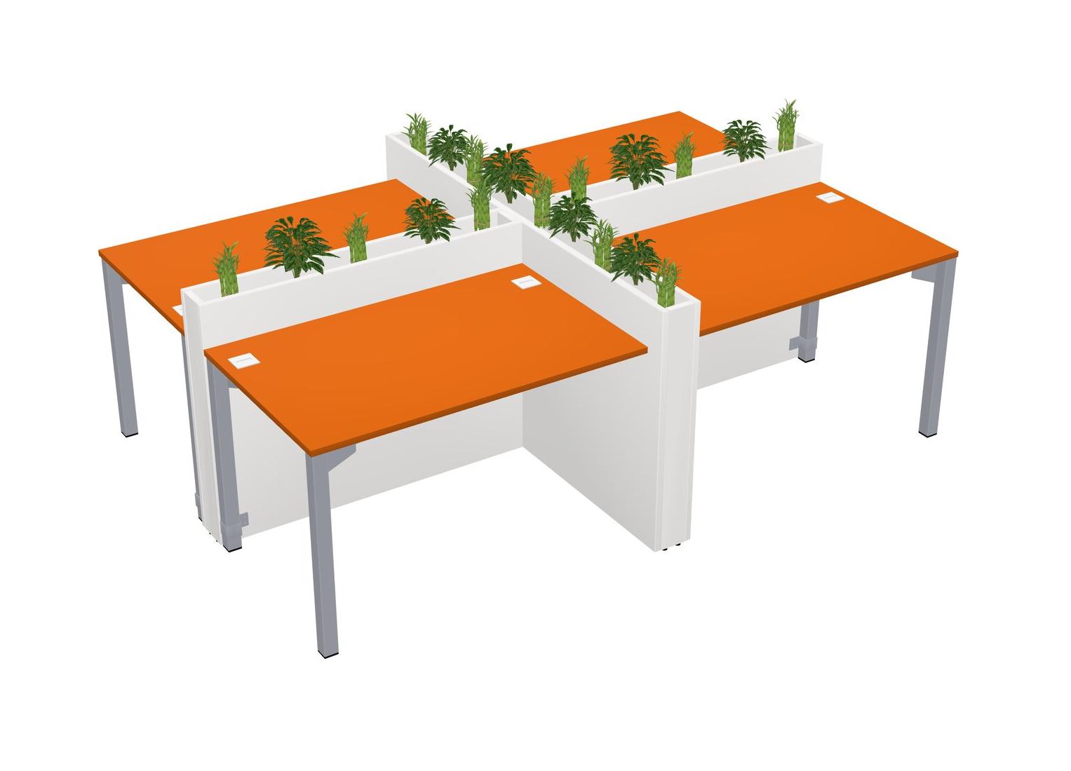 Orange Rectangular Shared Office Desk For 4 Persons Let Nature Help Flourish Your Productivity The Base Comes With An Adjustable Shelf To Provide Space For Pots (Pots & Plants Sold Separately)